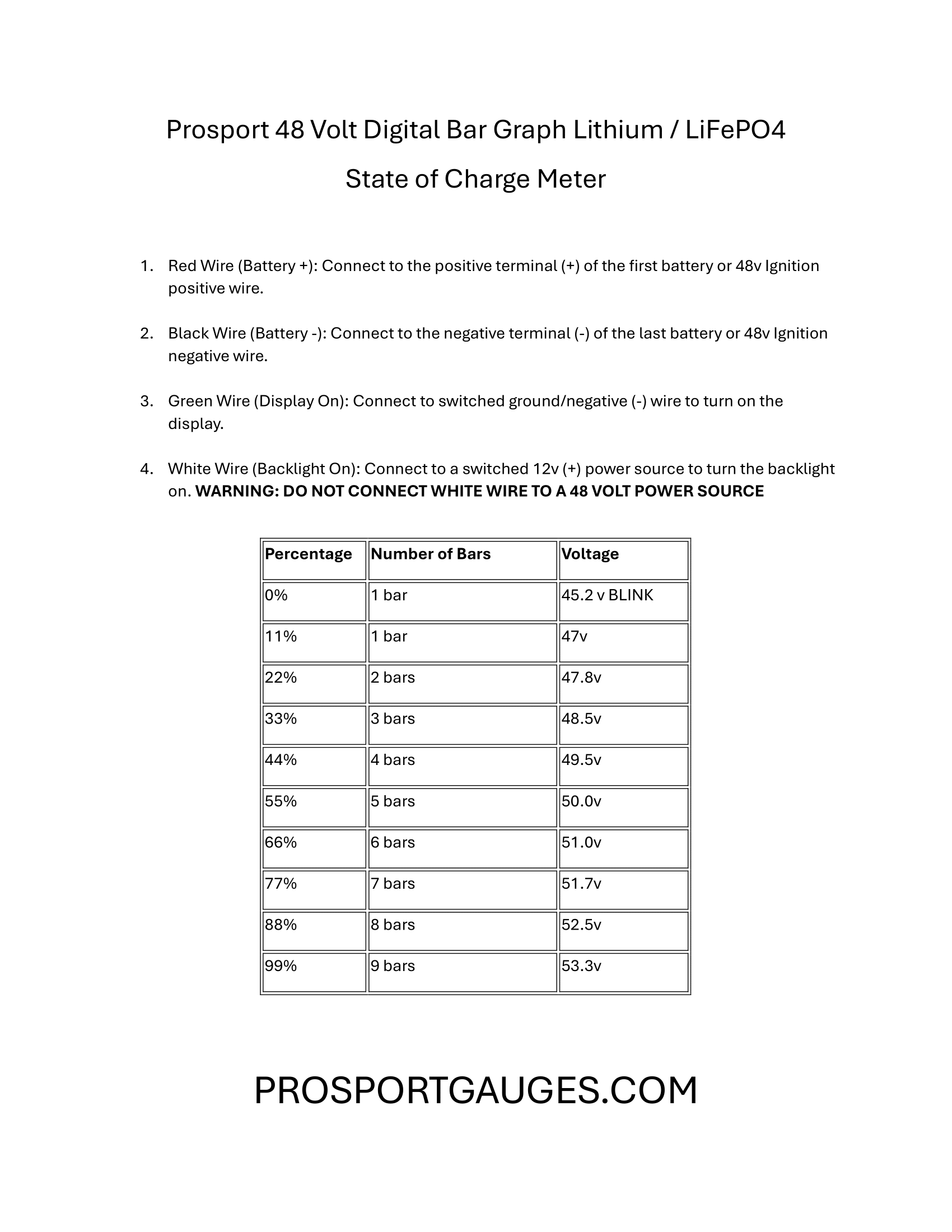 Prosport Gauges Digital BAR Golf Cart Battery State of Charge Meter