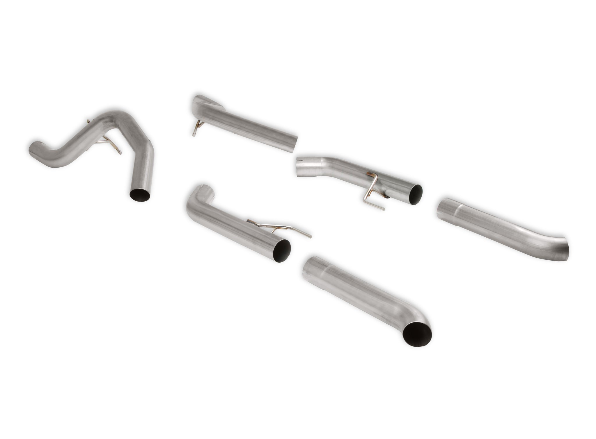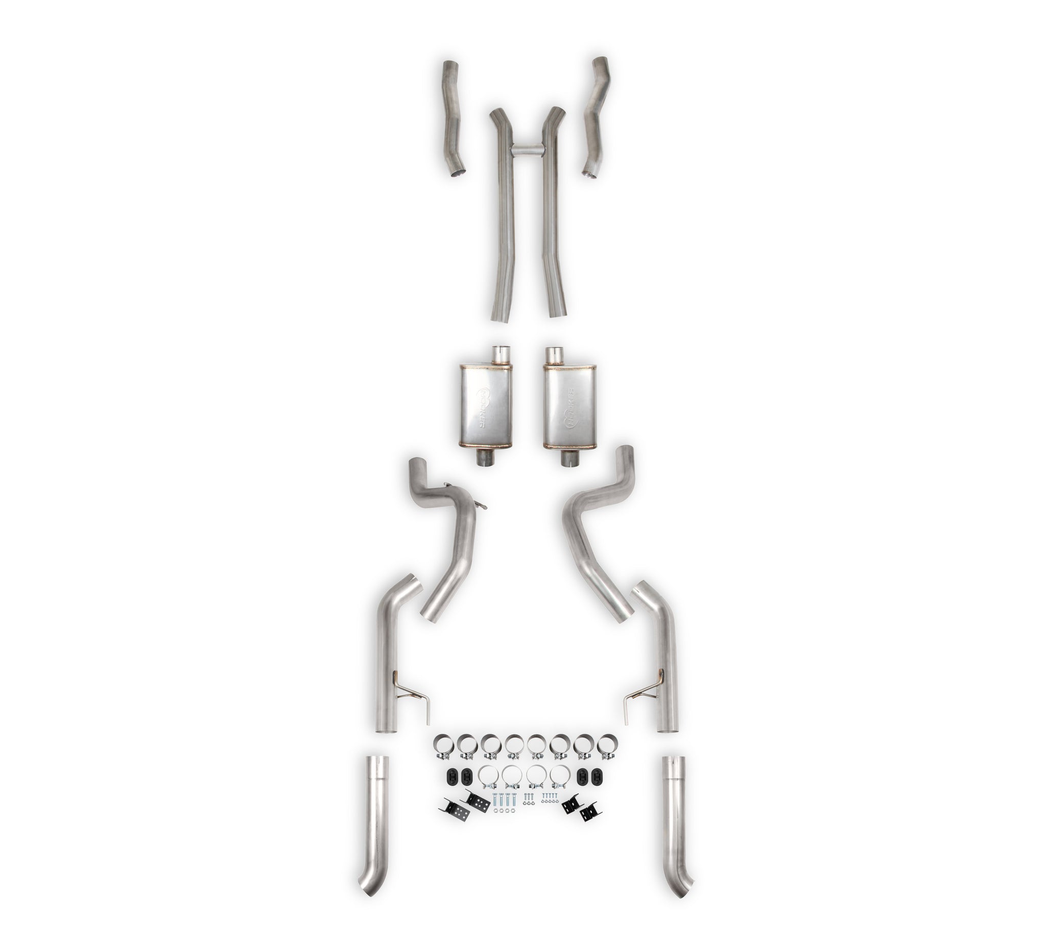 Finish off your HEMI Swap project with the finest exhaust system available for your 1968-1970 Mopar B-Body. Available in either 2.5" or 3" diameter, straight through 304 Stainless steel zero restriction mufflers and 304 stainless steel mandrel bent exhaust tubing. Specifically designed for HEMI swap vehicles and a direct fit to BH2358 Long Tube Headers. The removable head pipes allow the first 24" of exhaust pipe to be removed in seconds with slip couplers allowing the transmission to be removed without dropping the entire exhaust. High tuck design for best possible ground clearance for lowered cars, and an original style turn down tail pipes for a factory look.