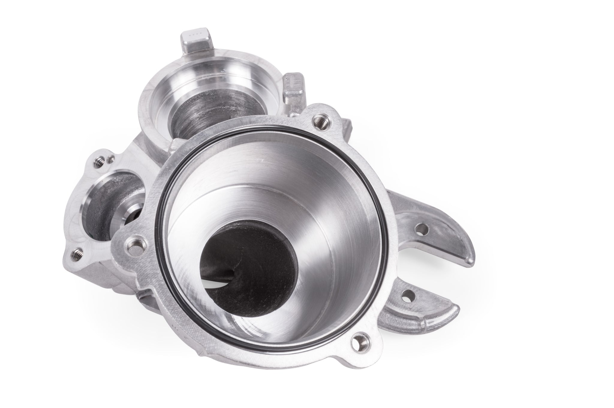 APR's 2-piece design solves this issue with an adjustable height design. While a 2-piece design is more difficult and expensive to manufacture, it's the only way to ensure an accurate fit and perfect seal. APR provides a Viton seal that's placed at the bottom of the muffler housing. The muffler cover is then installed forming a seal with the factory gasket. Then, the center tube is inserted and screwed into place to the desired depth, compressing against the Viton seal to ensure a leak proof seal in every scenario. Finally Tension from the seal prevents the tube from coming loose, and the included Loctite provides extra security from movement. With the turbo muffler deleted, the APR design provides a smooth, turbulence free, and leak proof path for airflow existing the turbo!