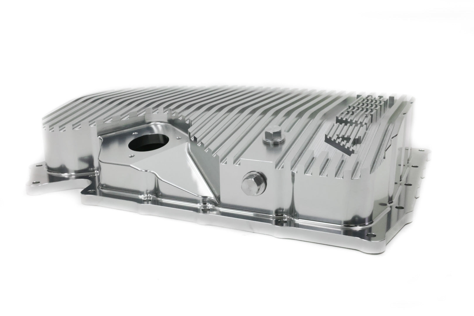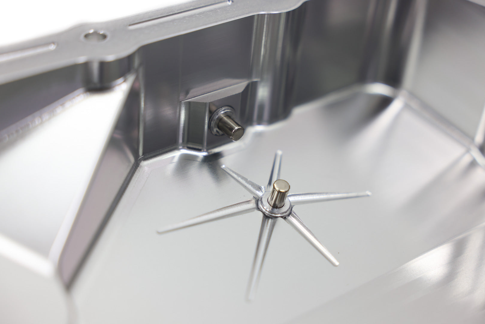 The oil drain port on the ARM MQB Billet Oil Pan is designed with 6 drain channels which allow for the most amount of oil to be drained from the pan, ensuring the fresh oil is not contaminated with a larger amount of spent oil.  The ARM MQB Billet Oil Pan includes a magnetic drain plug to capture unwanted metal debris from entering the engine.