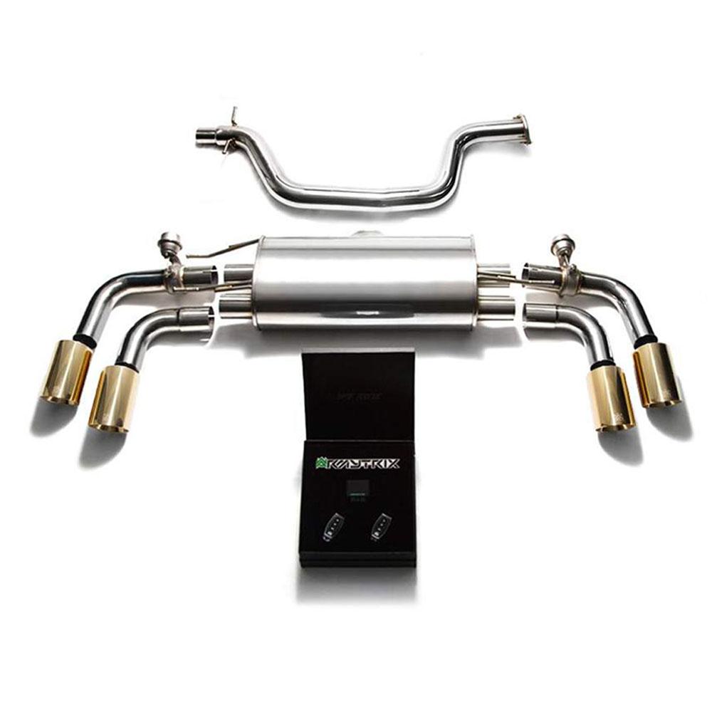 Enhance your Audi TT by adding the ARMYTRIX Super Sport Stainless Steel Exhaust System. This system will increase power, reduce weight, and improve sound. This precision-made performance system delivers more power, especially in the low and mid rev range, the effect on the sound is significant, adding a deep resonant sporty sound, but at the same time neutralizes the annoying frequencies in the most critical rpm range. Complete the look with a set of four sporty chrome polished silver tailpipes. ARMYTRIX exhaust systems differ from other brand' exhaust systems with their unique "Throttle Pedal Sensor and Engine RPM Signal Auto Functions".