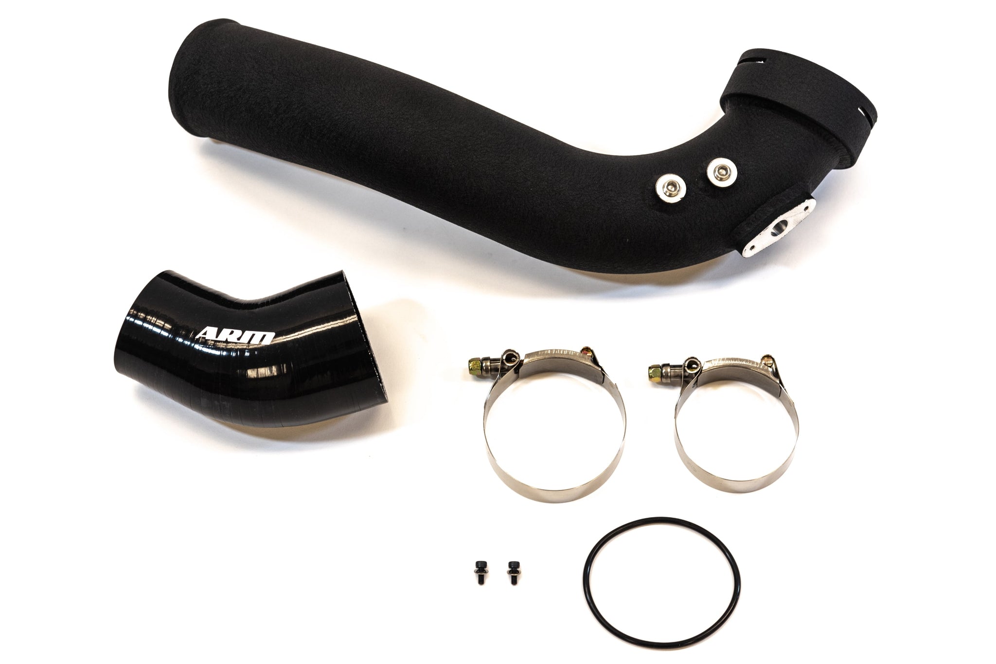 The ARM Motorsports N55 charge pipe is designed to handle the highest levels of boost. Constructed of 6061 aluminum, the ARM N55 335i charge pipe connects to the throttle body using a precision CNC machined connection which is secured by the OEM metal C-Clip. It also includes an upgraded O-Ring for a secure and leak-free seal.