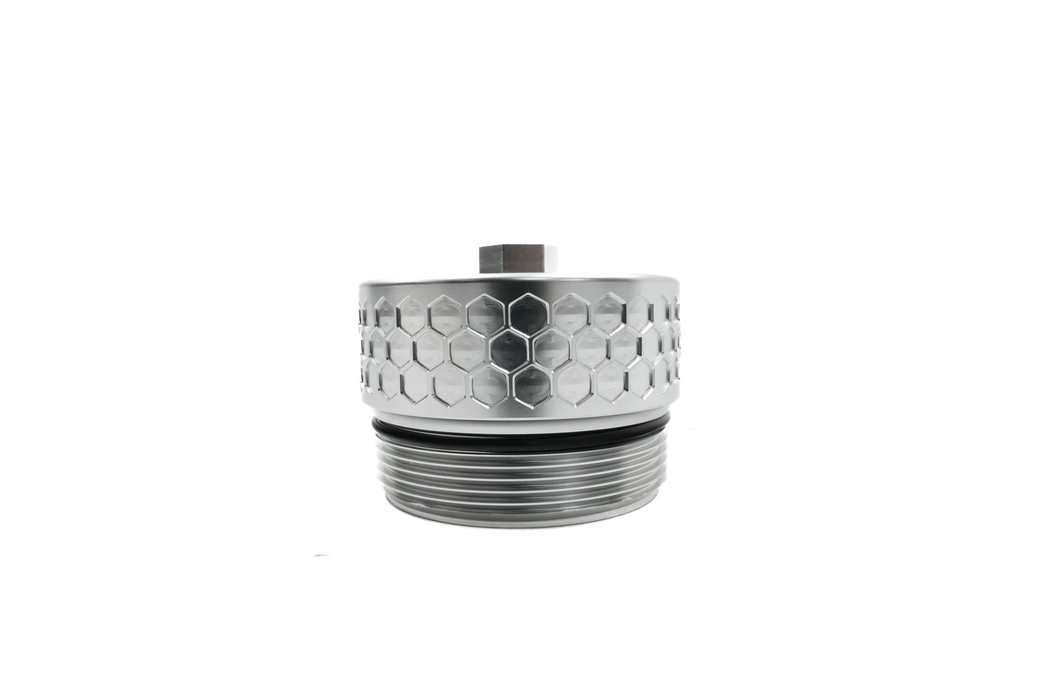 The ARM Billet Aluminum Oil Filter Cap is crafted from a solid block of T6061 aluminum and features a precision milled hexagonal design for better grip. It also features an engraved ARM logo on the top of the cap.