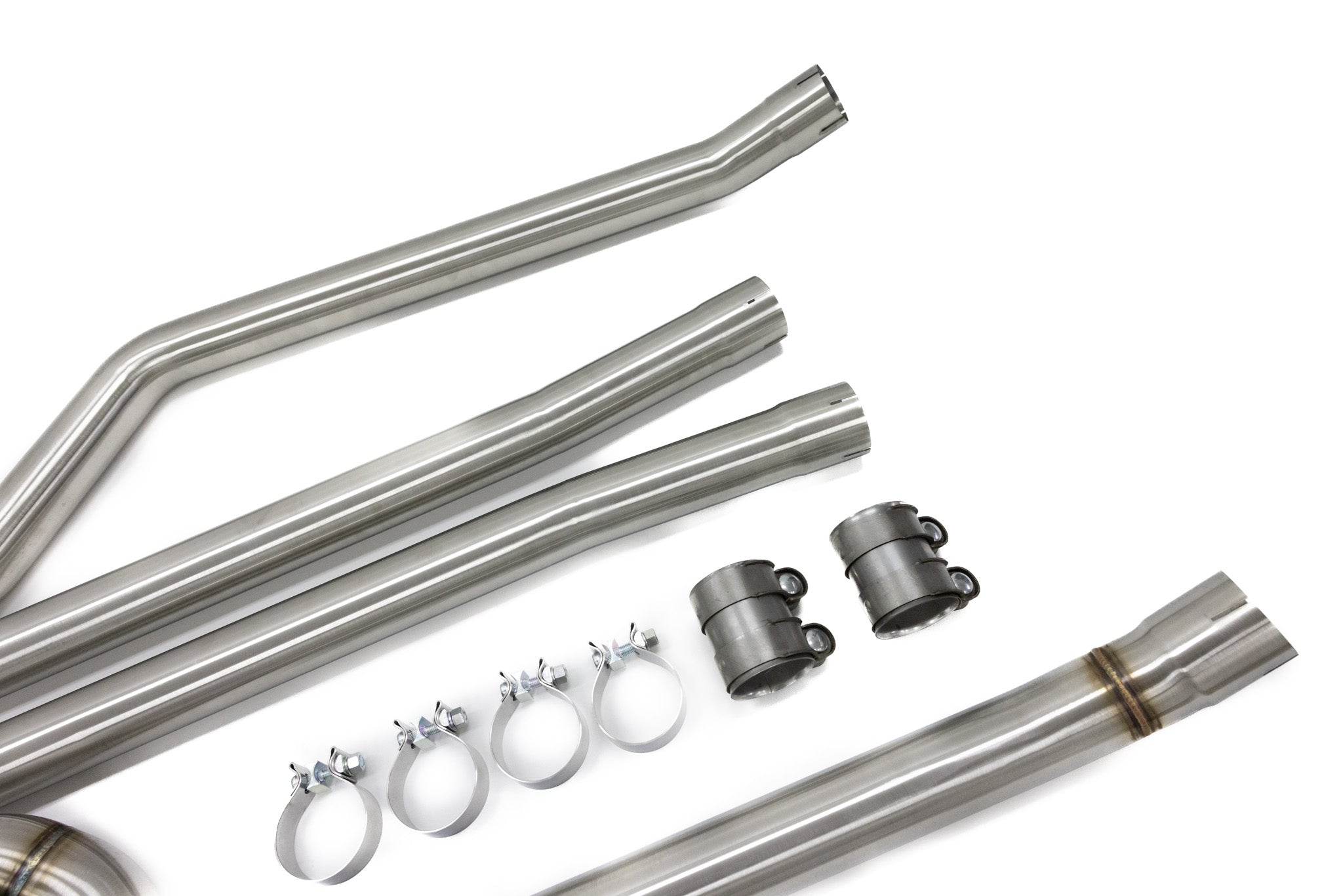 The ARM N63TU3 Midpipes are a complete midpipe system which connects to the OEM axle back section to retain the OEM valve controls and exhaust tips.