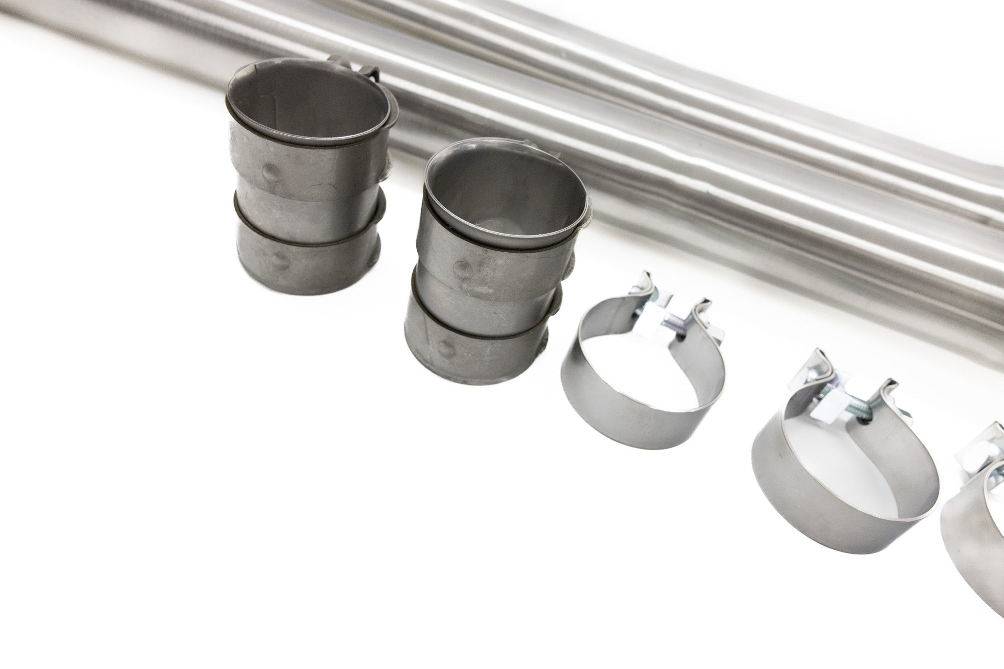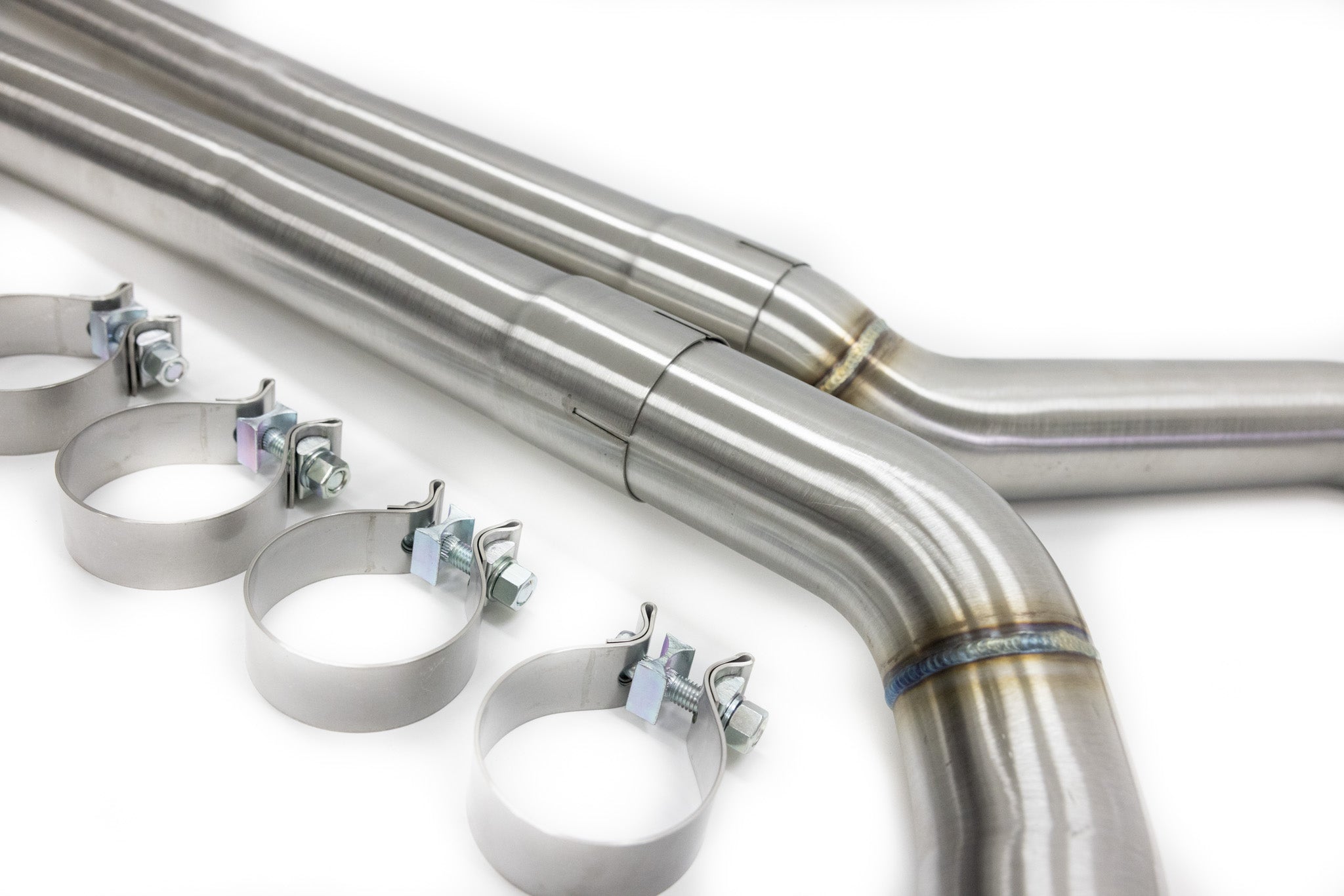 The ARM N63TU3 Midpipes come in two main sections, the front section and the rear section. The front section connects to the downpipes which utilize the slip-fit style connection.