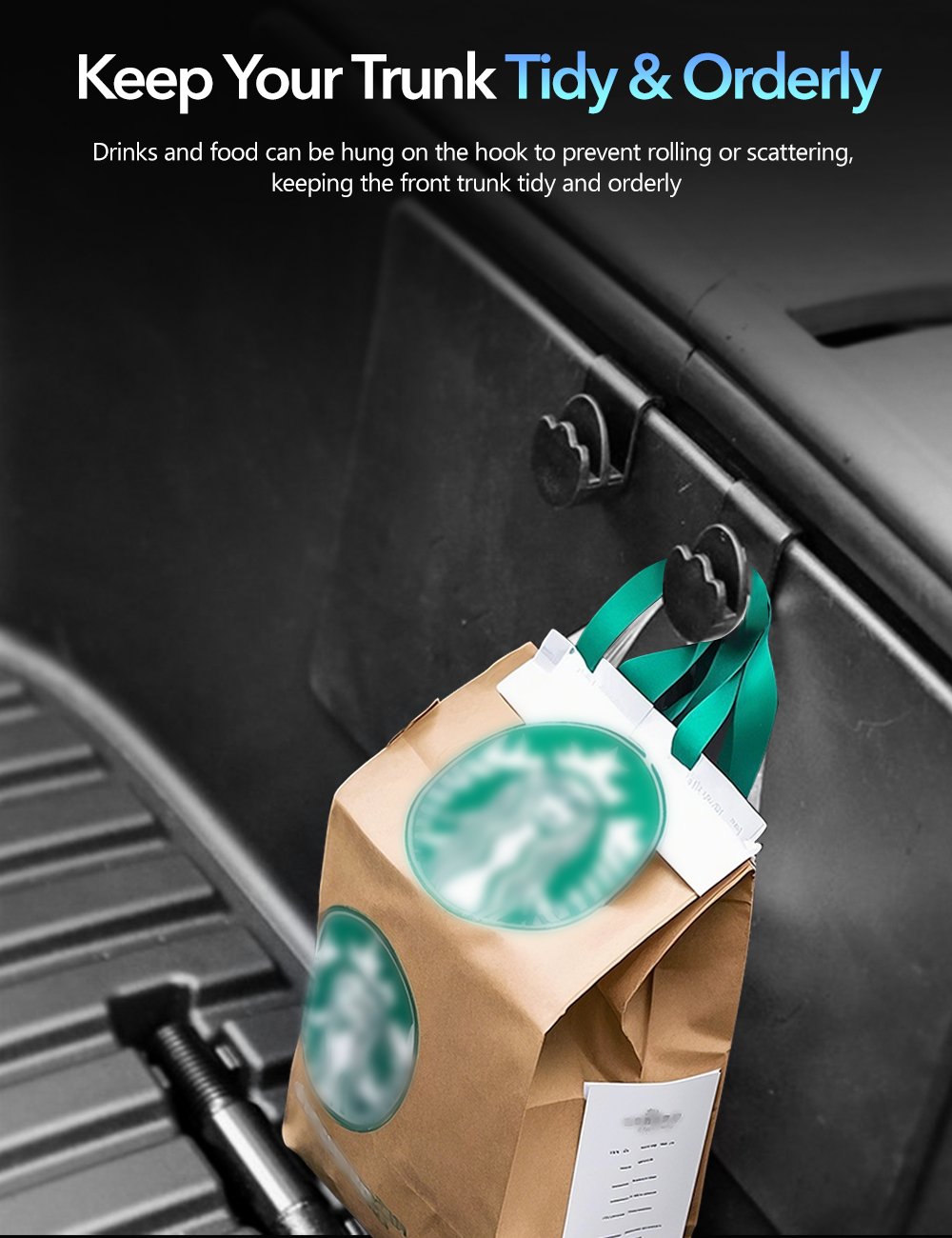 • 【Customized Design】These Model Y front trunk hook is specially made for Tesla Model Y, to help you reasonably enlarge the storage space.