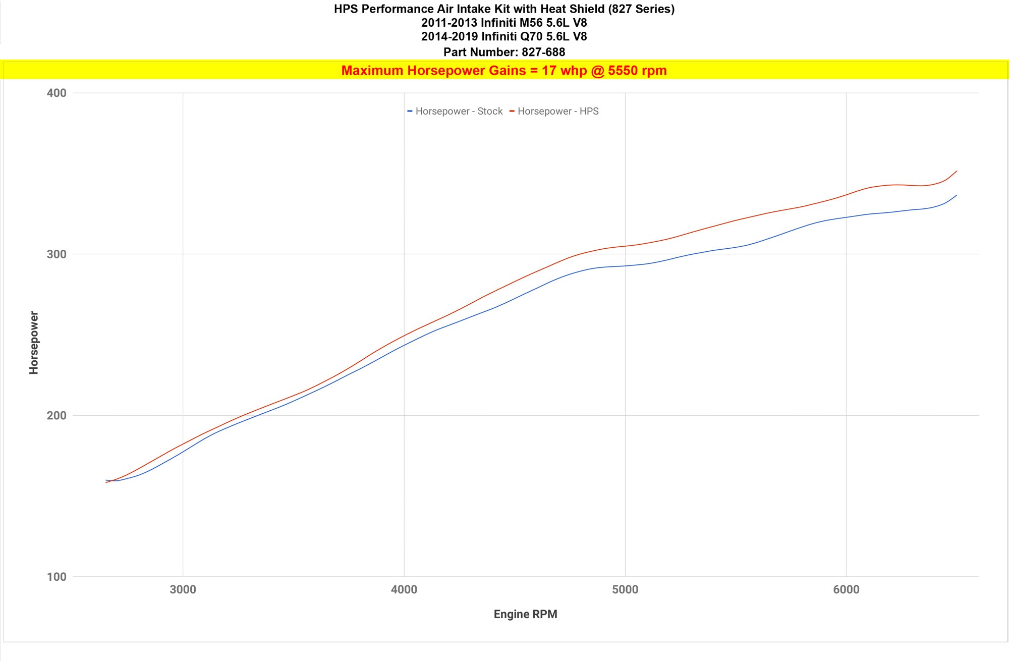 - Delivers dyno proven performance gains - increase horsepower +17 whp , torque +16.1 ft/lbs and improve throttle response. Fine-tuned by HPS Performance to deliver the maximum performance output through the top end power band.