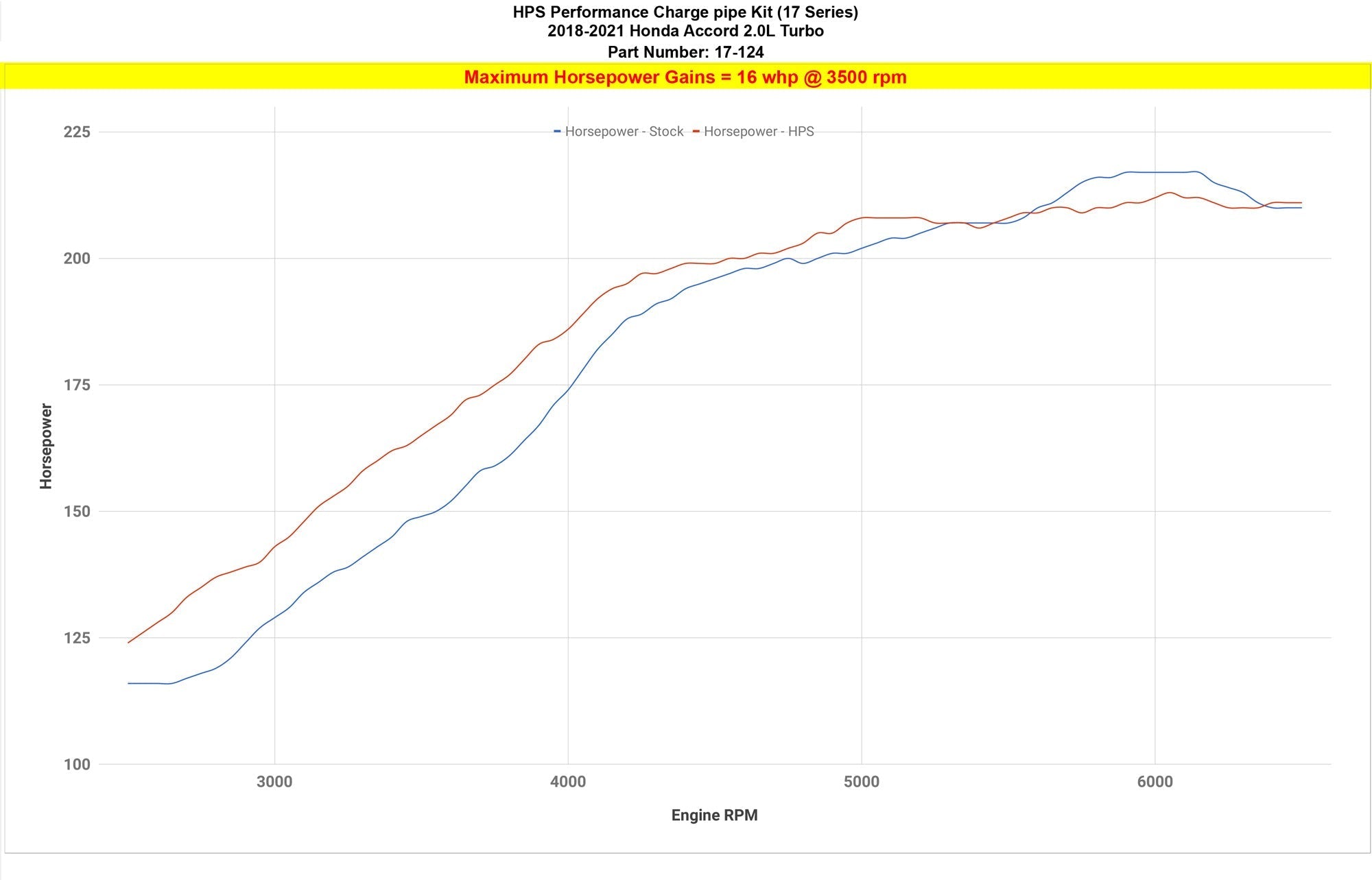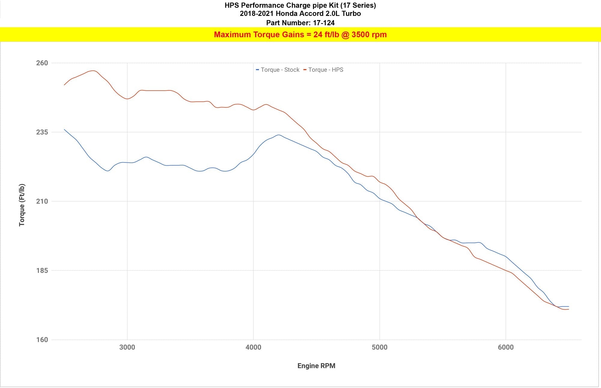 Features and BenefitsExperience increased horsepower, torque, throttle response, and acceleration for your 3rd Gen Acura RDX 2.0 Turbo with HPS Performance’s Intercooler Pipe Kit (Part number 17-124). The intercooler piping kit optimizes and smooth out the air flow, increase horsepower +16 Whp , torque +24 Ft/lbs at 3500 rpm and improve throttle response without re-tuning the ECU. This kit replaces the stock plastic upper cold side charge pipe and rubber boots with our custom mandrel-bent 16 gauge 6061 aluminum tubing, signature HPS 4-ply reinforced silicone hoses, and stainless steel clamps. With these upgraded materials, your RDX is future-proofed for more boost while reducing the risk of boost leaks.