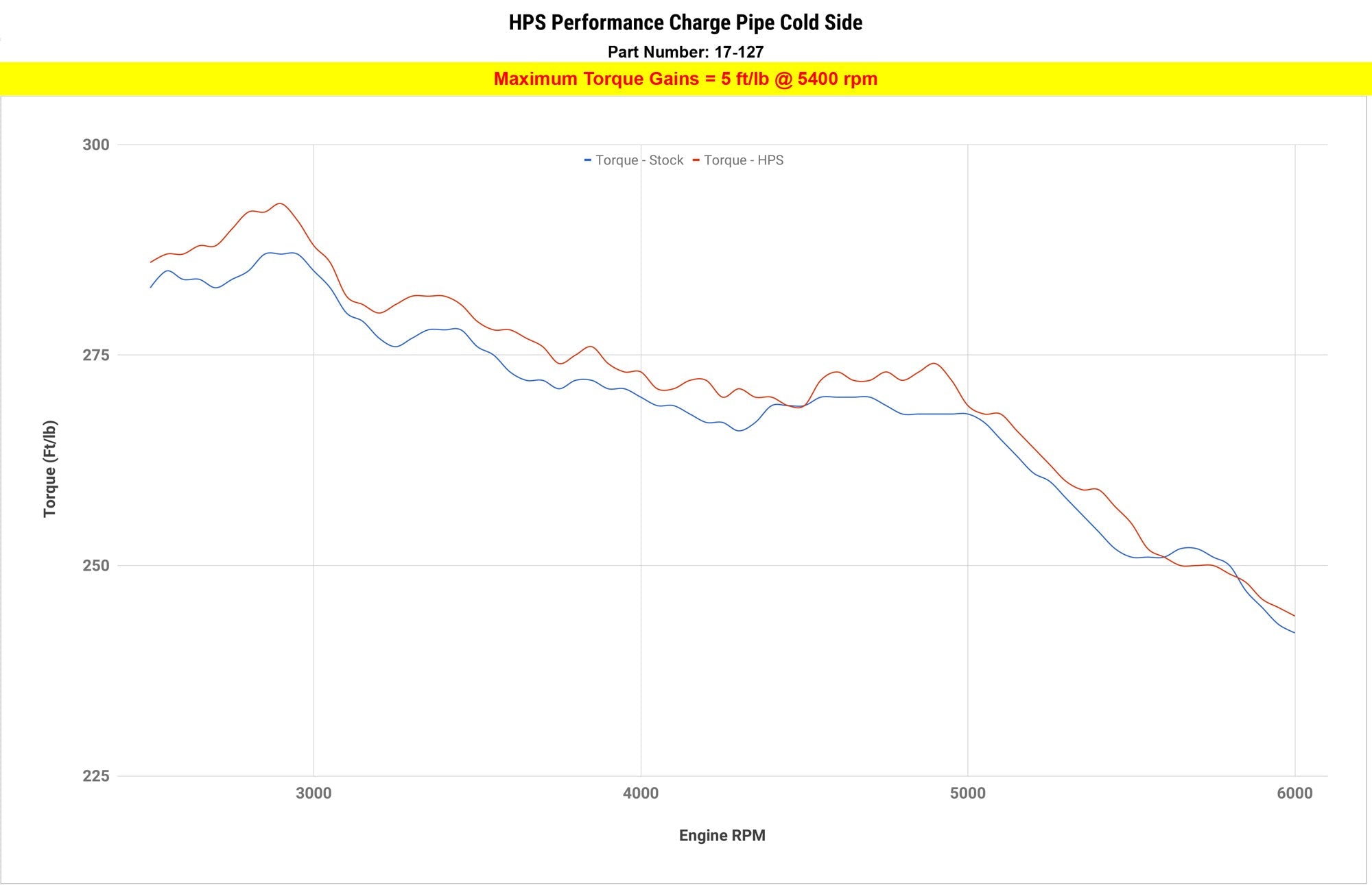 - Fine-tuned by HPS Performance to deliver the maximum performance gains - increase horsepower +5 Whp , torque +5 Ft/lbs at 5400 rpm.