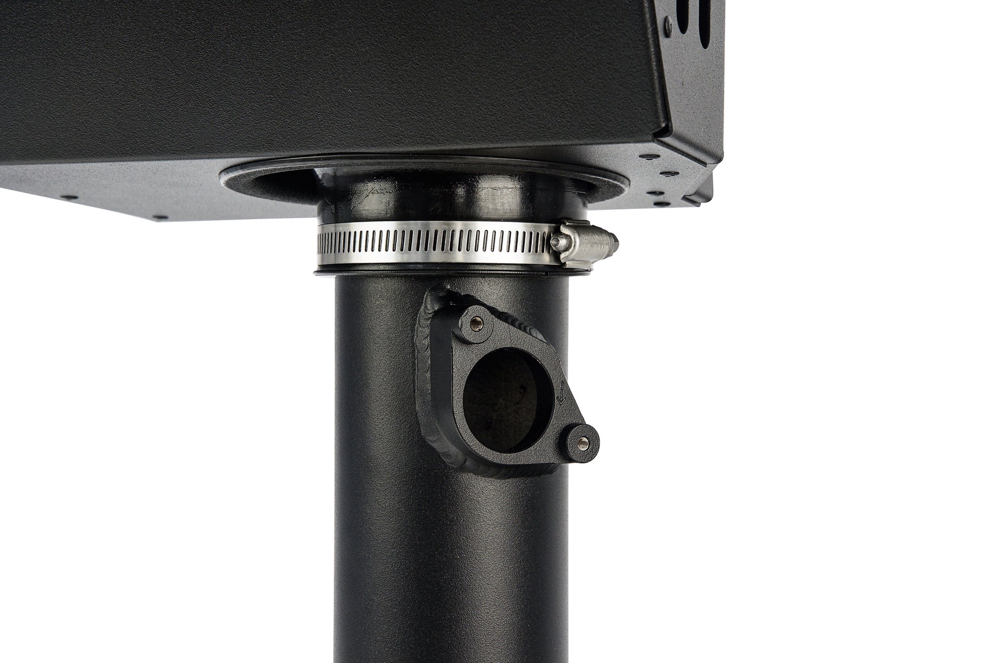 - Heavy duty powder coated steel enclosed heat shield directs fresh air in and keeps heat out.