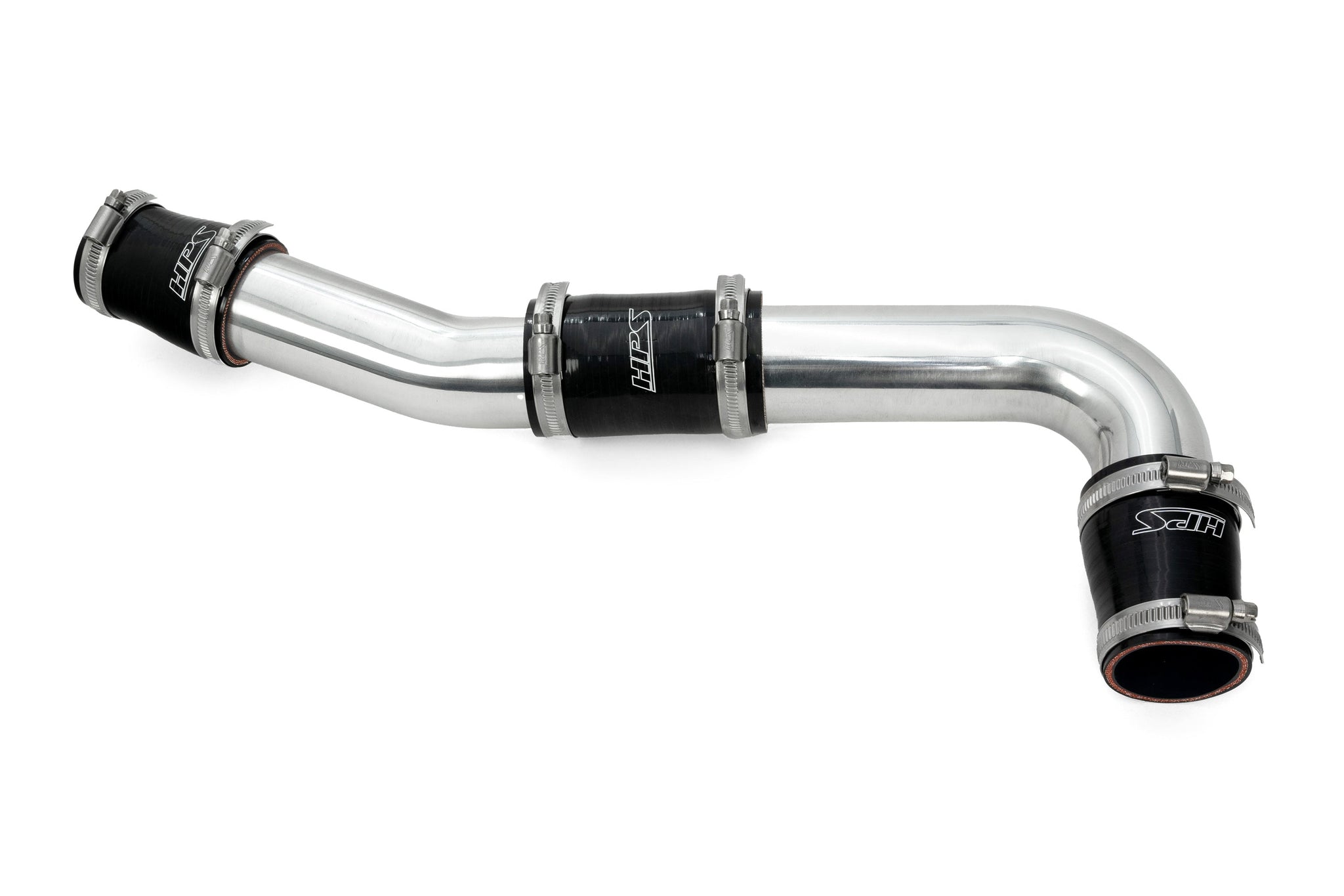 The HPS Performance Cold Side Intercooler Charge Pipe Kit (part number 17-166) is a complete bolt-on solution designed for noticeable power gains and enhanced responsiveness. Featuring cold side 2" mandrel-bent aluminum pipe with bead-rolled ends, ensures a leak-free and robust airflow path. Experience dyno-proven increases of 7.4 horsepower and 7.1 lb-ft. of torque, resulting in sharper throttle response and reduced turbo lag. Constructed with high temperature 4-ply reinforced oil resistant couplers, 100% stainless steel embossed hose clamps, and all necessary hardware, this kit offers a straightforward installation without requiring a retune, making it the perfect upgrade for immediate performance improvement alongside long-lasting durability.