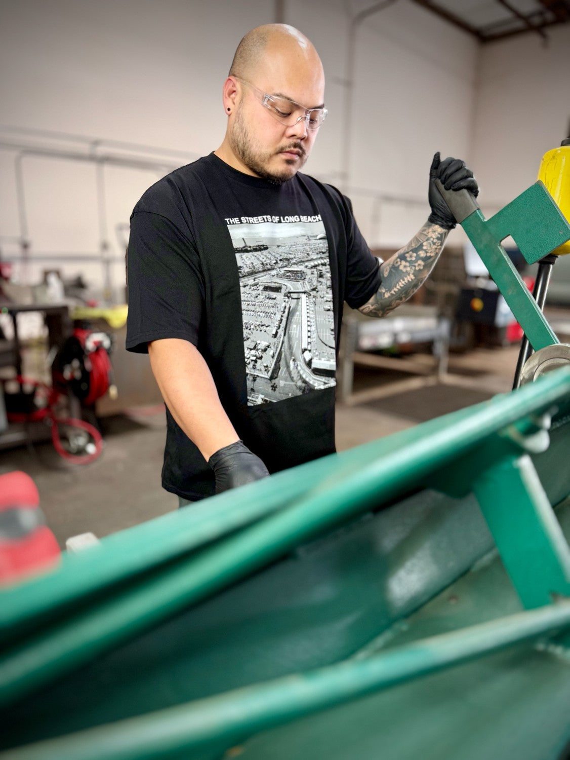 - Photo by Larry Chen, Aerial view of FDLB course with Long Beach skyline in multi-color silkscreen printed on front center