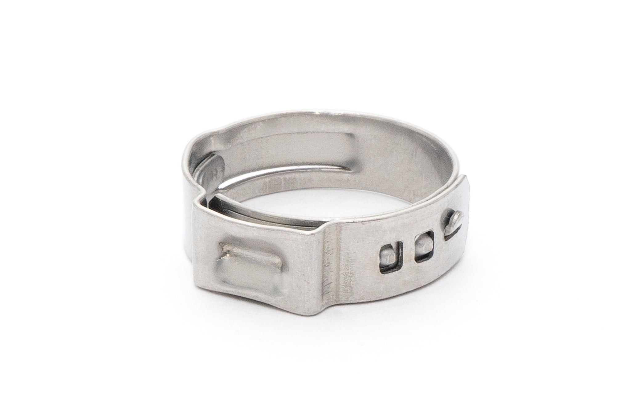 HPS Performance Ear Clamps are specialized for securing hoses onto fittings in various applications, ranging from automotive to industrial settings. Their robust construction and secure fastening mechanism provide reliable performance in demanding environments. These clamps feature a narrow 304 stainless steel band with ears designed to be crimped using a special crimping tool. This ensures consistent, repeatable installation, especially in manufacturing settings. HPS Ear Hose Clamps feature a tongue-and-groove design to provide secure and uniform clamping force around hoses, ensuring a reliable seal. Ear clamps are a versatile and reliable option for securing hoses, providing efficient sealing and peace of mind against leaks and system failures.