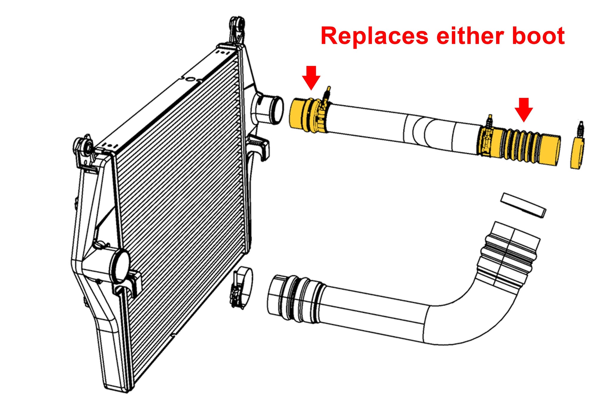 - Direct replacement upgrade for an old or damaged OEM turbocharger intercooler boot.
