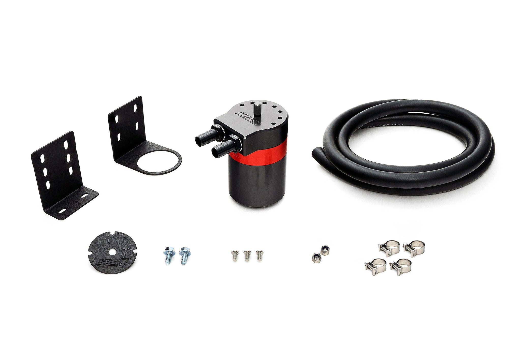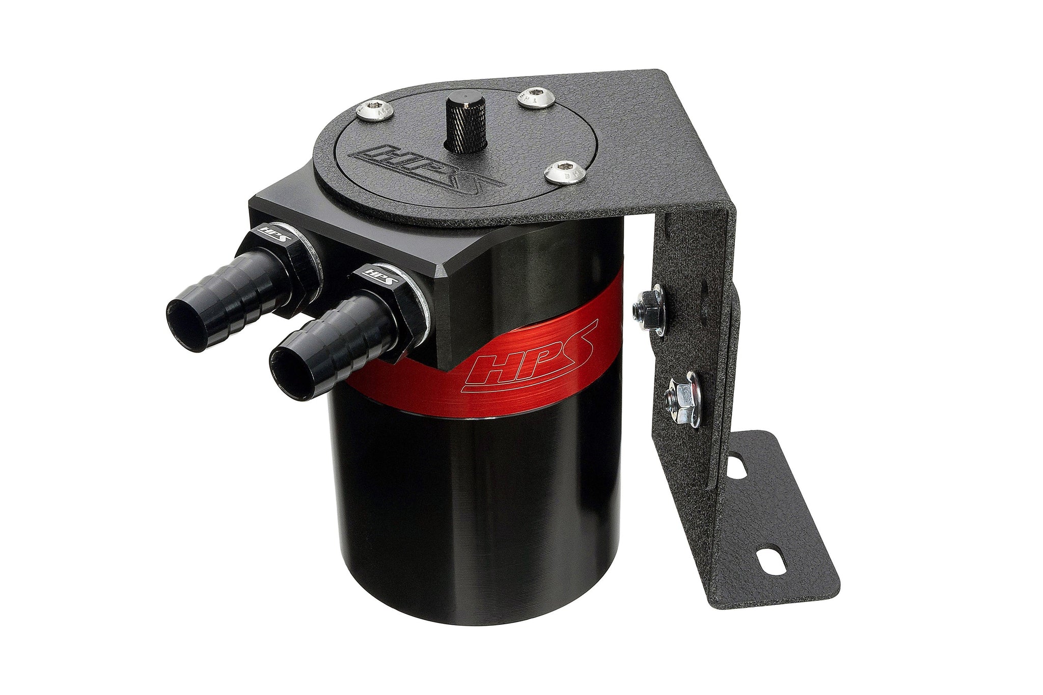- Includes an HPS Performance oil catch can, two barb adapters, 6 feet of rubber hose, stainless steel hose clamps, and all basic hardware.
