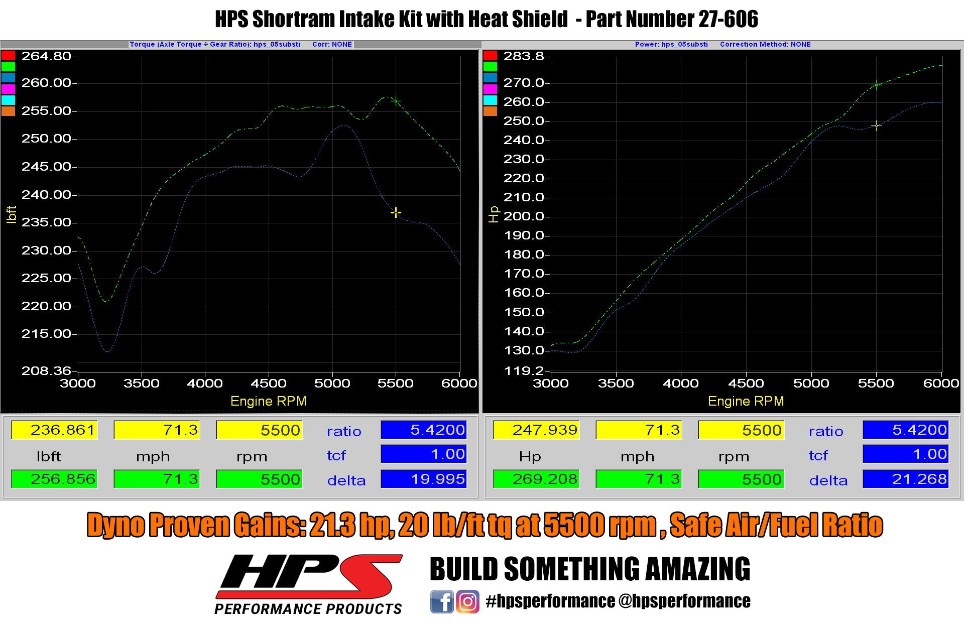 - Delivers dyno proven performance gains - increase horsepower +21.3 whp , torque +20 ft/lbs and improve throttle response. Fine-tuned by HPS Performance to deliver the maximum performance output through the top end power band.