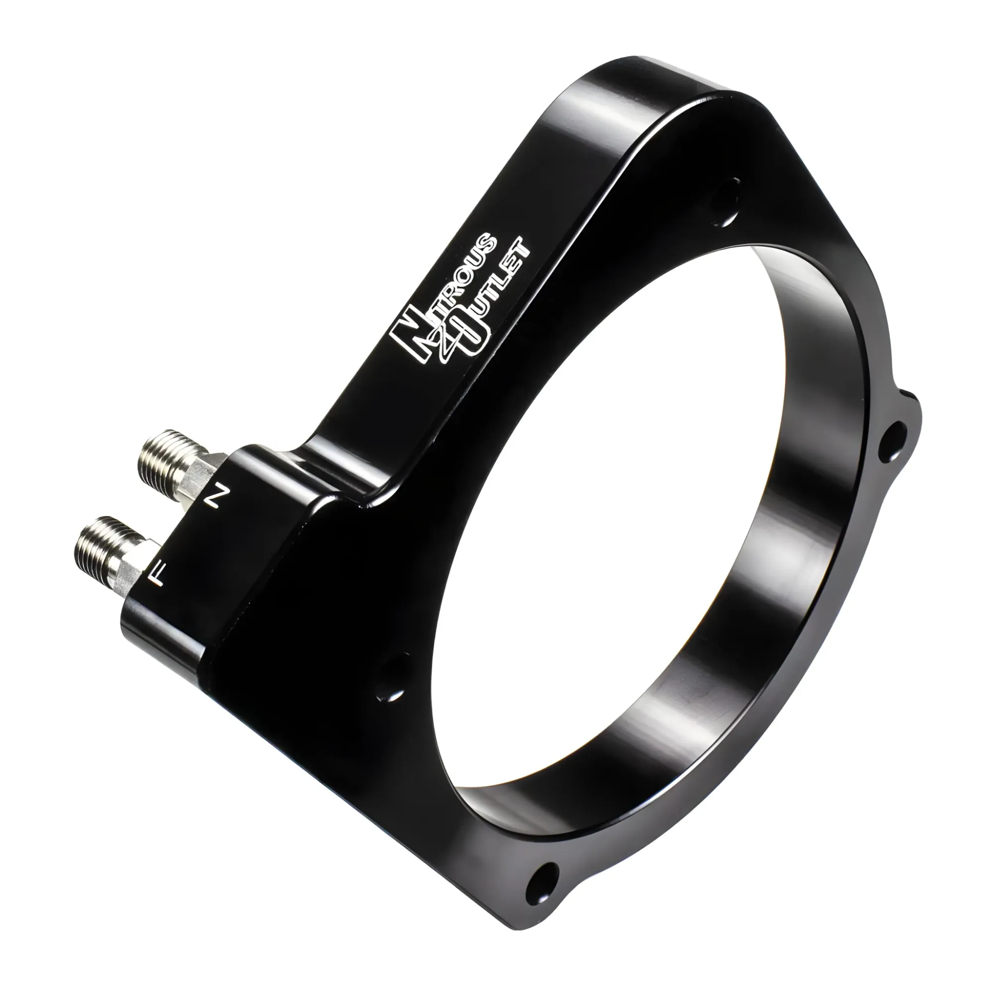 Superior Atomization. This injection plate has 6 specially designed nitrous and fuel discharge ports that completely saturate the air intake charge with the best atomized mixture possible. For higher horsepower levels proper distribution into the air stream is critical for even cylinder to cylinder distribution.