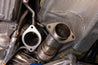 The longer downpipe (front downpipe) in the set utilizes a reinforced flex section. The flex section is incorporated into the long downpipe to relieve stress on the turbo during aggressive driving.