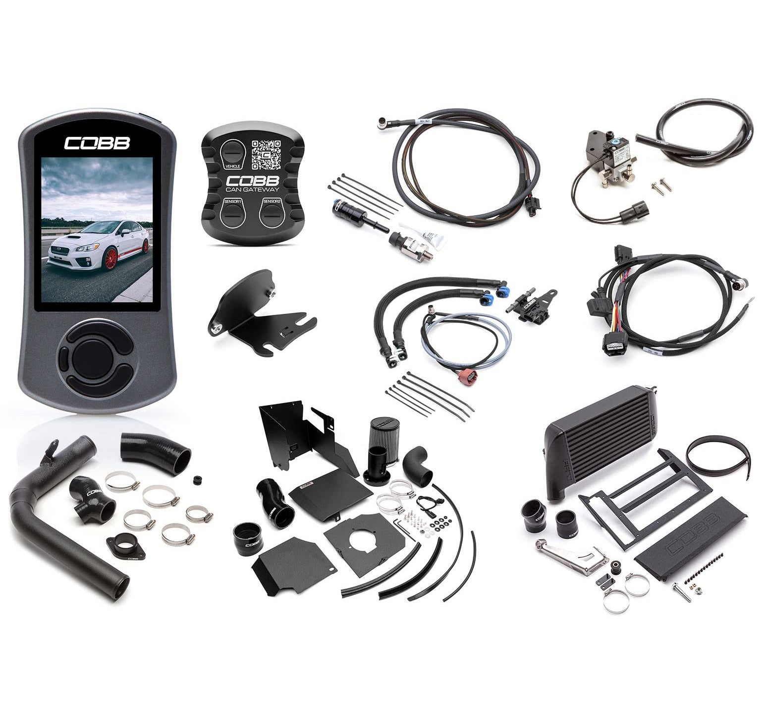 The Subaru NexGen Stage 2 + CAN Flex Fuel Power Package includes an Accessport V3, SF Intake System, CAN Flex Fuel Upgrade (CAN Gateway Module with Harness / Bracket and Ethanol Sensor), CAN Fuel Pressure Sensor Kit, Charge Pipe Kit, Top Mount Intercooler, 3-Port Boost Control Solenoid (BCS) & COBB Vehicle Badge for the Subaru WRX 6MT 2015-2017!