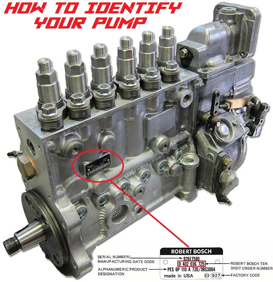 Most companies require you to have a core 215hp or core 180hp pump to send in. If you only have a 160hp or 175hp pump, they will either not give you a core credit or they'll significantly reduce the credit given. Not at Dynomite Diesel! We will take ANY P-7100 pump as long as it originally came off of a 94-98 Dodge Ram Pickup. Below is a detailed list of applicable Bosch P-Pump 10-digit part numbers we will accept. The Bosch tag with the 10-digit part number can be found on the driver's side of the pump. If your pump is missing the tag on the driver's side of the pump please take a picture of the Bosch tag on the very back of the pump (on the governor housing) and send it to us prior to purchasing your new pump so we can verify your core is acceptable.