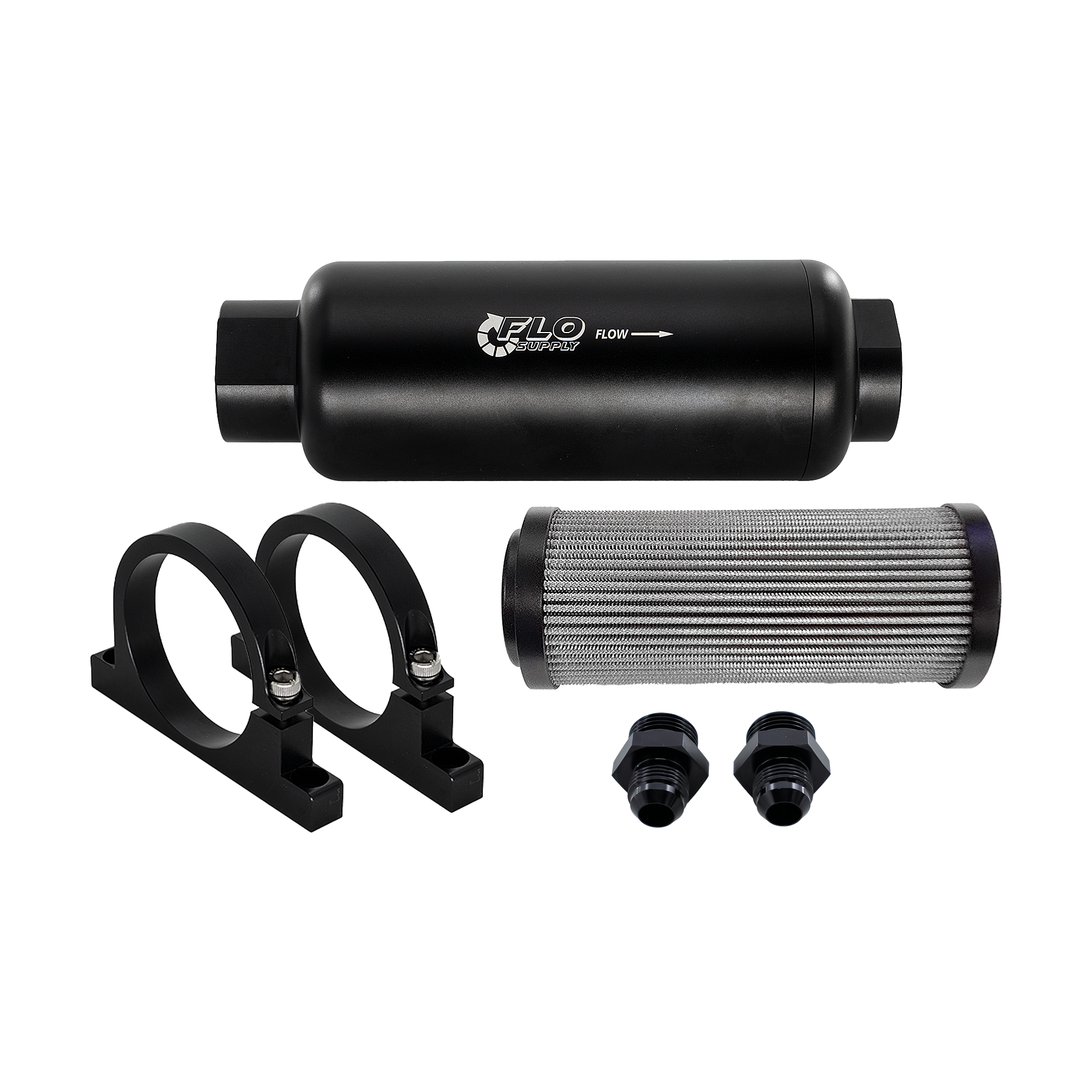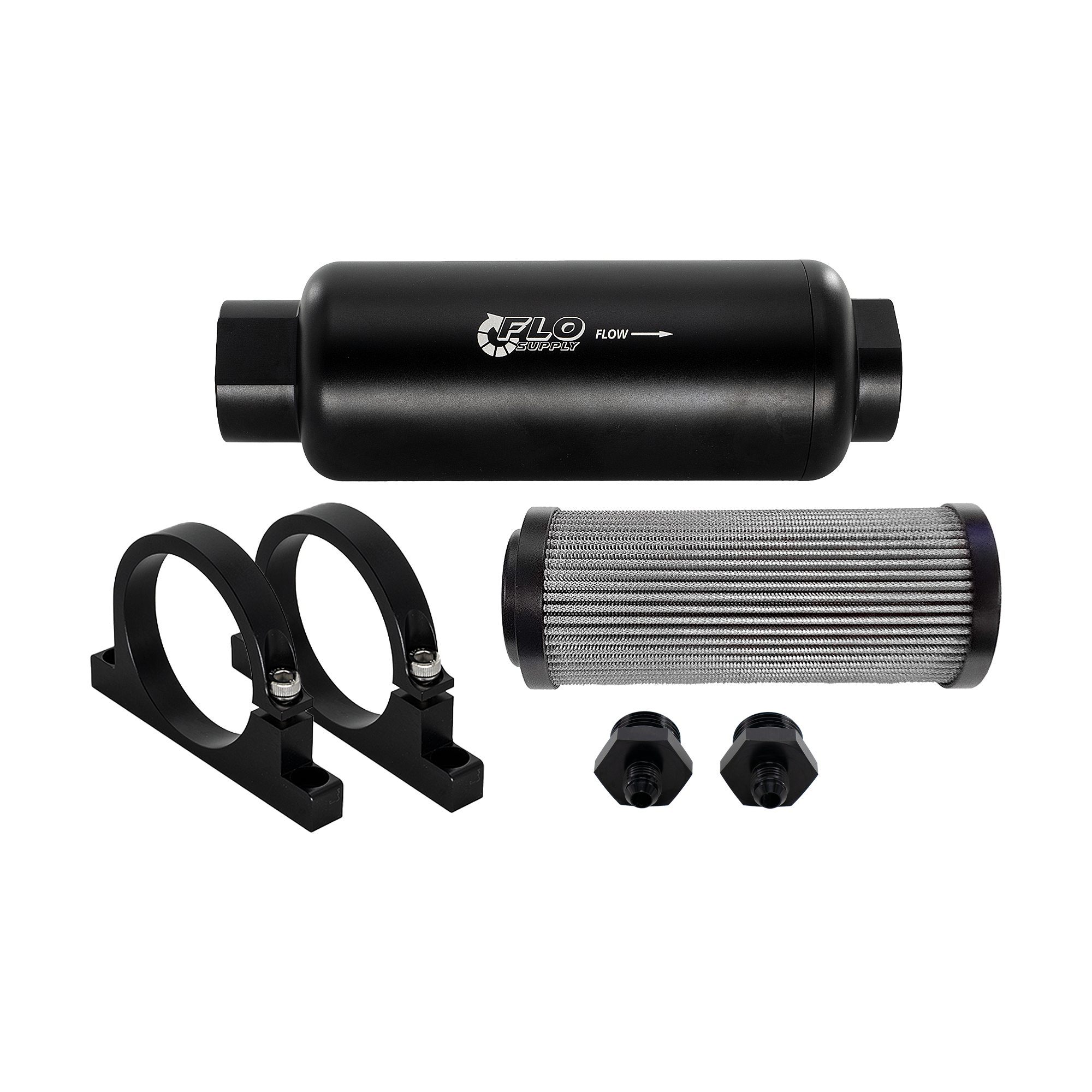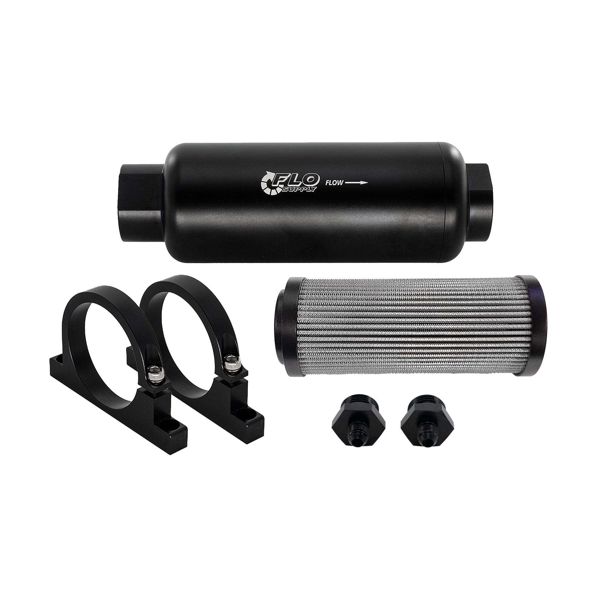 Take your fuel system to the next level with the Flo Supply Inline Fuel Filter Kit, a premium bundle built for durability, performance, and secure installation. This kit includes everything you need for reliable fuel filtration in high-demand applications: