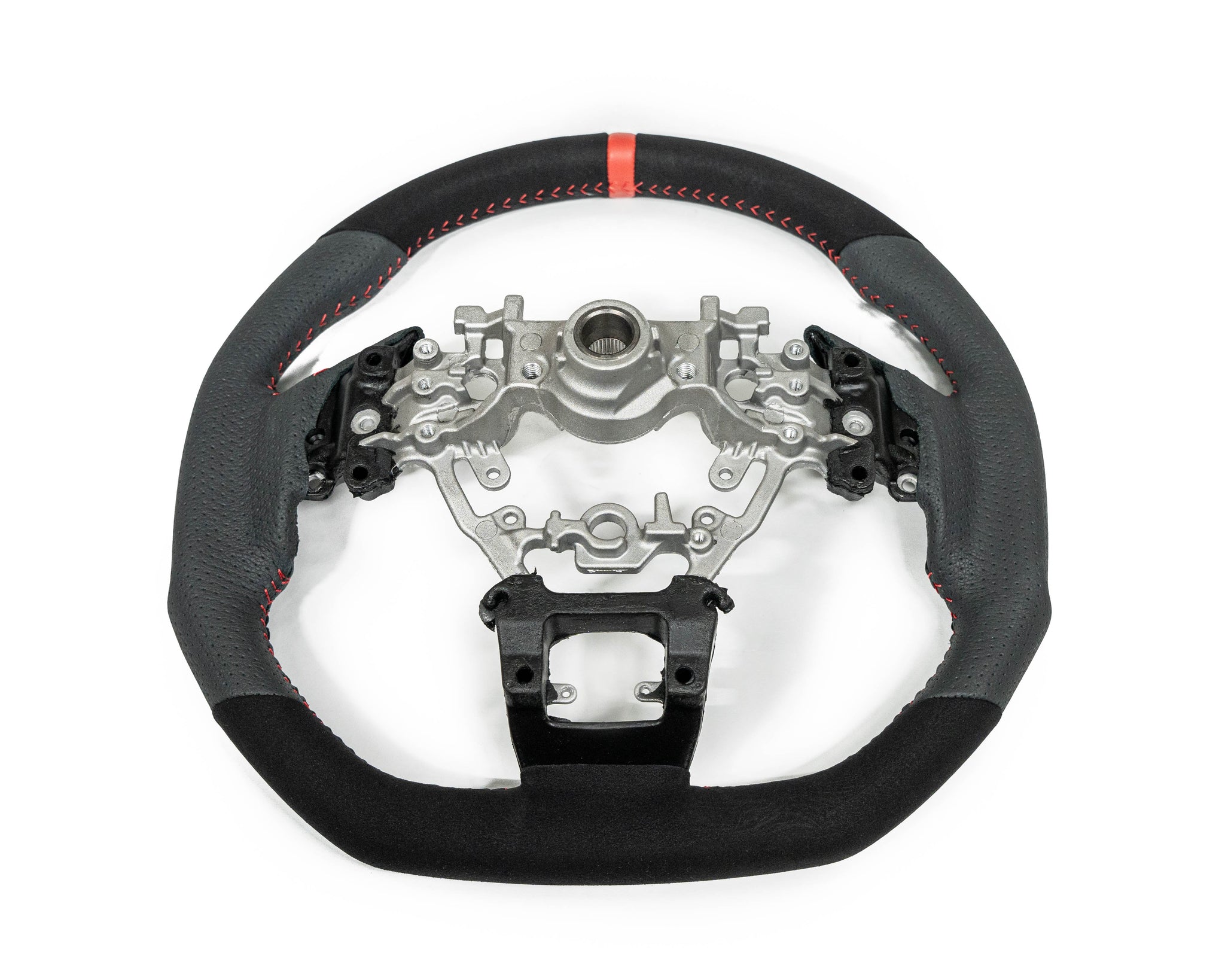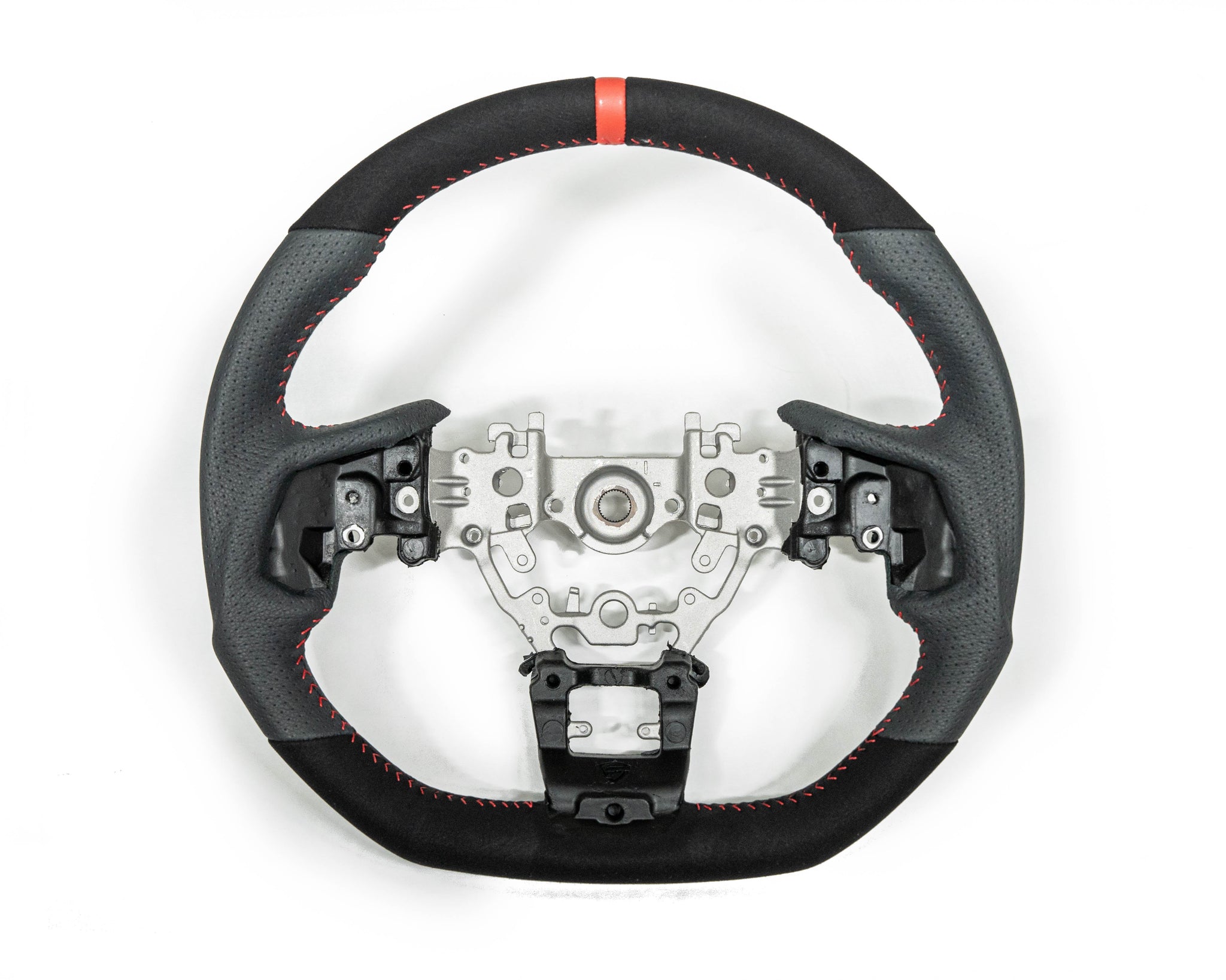 This Steering Wheel has been designed to provide the interior of your vehicle with a modern yet aggressive look while providing the driver with a race-inspired feel. The factory WRX wheel leaves much more to be desired, and as the car starts to age the materials begin the breakdown and wear out around the main contact areas. The Faction Fab steering wheel is a 100% factory replacement in higher quality and better feeling design to improve the look, feel, and your driving experience. These wheels allow you to simply remove the stock unit and replace it with the Faction Fab, and the factory airbag and controls are simply swapped over using basic hand tools. The steering wheels are available in several materials to suit your individual preference and are hand-stitched and assembled for the highest of quality and consistency. The wheels feature a D shape flat bottom design that offers a sporty feel and look. In addition, the wheels are slightly thicker than stock to give you better control and feel in your hands, which makes for an amazing driving experience when combined with the contoured shape at 3 and 9 o’clock grips.