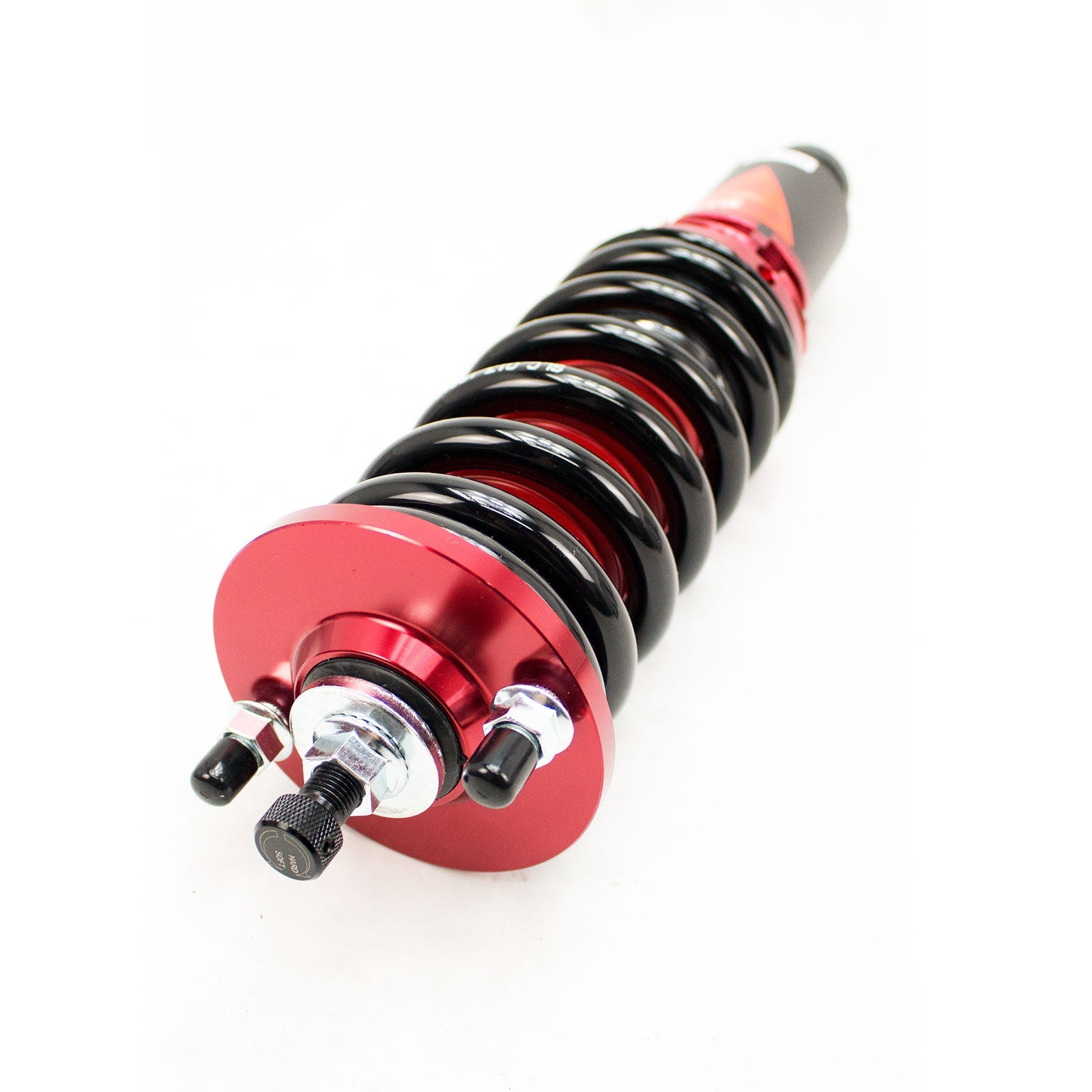 The Godspeed Project MAXX coilovers are for the tuners that want a track oriented setup that also provides daily commute comfort. With 40 levels of damping valve adjustment, you can easily adjust from stiff to soft simply by twisting the knob. Featuring mono-tube design with large capacity 52 mm dia. JIS seamless carbon steel shock body filled with IP F.A. 5W damper oil with properly valved 44 mm internal pistons to endurance competitiveness on a track course or daily spirited driving on public road. Cold wound springs are made from high tensile SAE9252 steel to ensure durability. Vehicle ride heights are adjusted with lower brackets to offer maximum shock travel in order to provide comfort compared to lowering springs alone. Mostly billet aluminum hardware accessories are used for its weight saving property in order to reduced overall weight of the coil-over system yet remain durable. All parts are replaceable and most importantly shock absorbers can be rebuild for customization or simply purchase replacement cartridge without spending too much for complete new coil-over system. You will experience quicker response times, improved bump absorption and increase grip to increase the safety when pushing your car to the limit!Improved Springs Rate To Help Ride Handling And Response