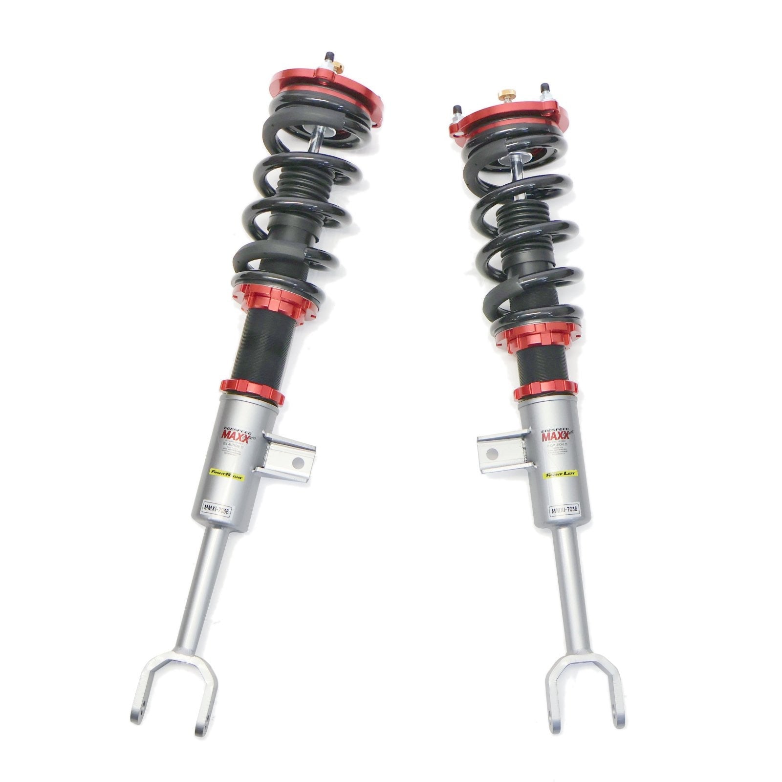 Equipped with Pillow Ball Top Mounts, the MAXX coilovers provide precise feedback from the suspension, giving you better control over your vehicle's dynamics. The high-rigidity SAE9252 steel coil springs ensure quicker steering and a more responsive ride, making every turn and corner feel more controlled. Plus, the CNC billet aluminum hardware keeps the weight down without sacrificing strength, optimizing overall performance.