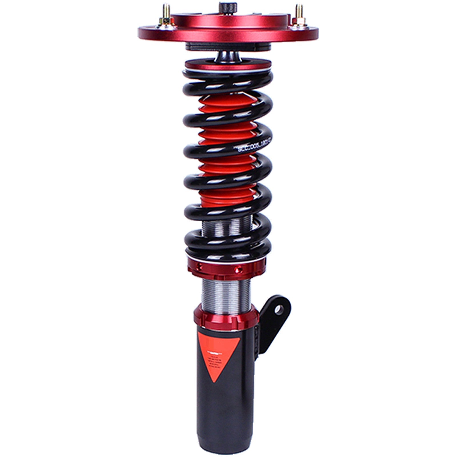 The Godspeed Project MAXX coilovers are for the tuners that want a track oriented setup that also provides daily commute comfort. With 40 levels of damping valve adjustment, you can easily adjust from stiff to soft simply by twisting the knob. Featuring mono-tube design with large capacity 52 mm dia. JIS seamless carbon steel shock body filled with IP F.A. 5W damper oil with properly valved 44 mm internal pistons to endurance competitiveness on a track course or daily spirited driving on public road. Cold wound springs are made from high tensile SAE9252 steel to ensure durability. Vehicle ride heights are adjusted with lower brackets to offer maximum shock travel in order to provide comfort compared to lowering springs alone. Mostly billet aluminum hardware accessories are used for its weight saving property in order to reduced overall weight of the coil-over system yet remain durable. All parts are replaceable and most importantly shock absorbers can be rebuild for customization or simply purchase replacement cartridge without spending too much for complete new coil-over system. You will experience quicker response times, improved bump absorption and increase grip to increase the safety when pushing your car to the limit!Improved Springs Rate To Help Ride Handling And Response