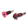 The Godspeed Project MAXX coilovers are for the tuners that want a track oriented setup that also provides daily commute comfort. With 40 levels of damping valve adjustment, you can easily adjust from stiff to soft simply by twisting the knob. Featuring mono-tube design with large capacity 52 mm dia. JIS seamless carbon steel shock body filled with IP F.A. 5W damper oil with properly valved 44 mm internal pistons to endurance competitiveness on a track course or daily spirited driving on public road. Cold wound springs are made from high tensile SAE9252 steel to ensure durability. Vehicle ride heights are adjusted with lower brackets to offer maximum shock travel in order to provide comfort compared to lowering springs alone. Mostly billet aluminum hardware accessories are used for its weight saving property in order to reduced overall weight of the coil-over system yet remain durable. All parts are replaceable and most importantly shock absorbers can be rebuild for customization or simply purchase replacement cartridge without spending too much for complete new coil-over system. You will experience quicker response times, improved bump absorption and increase grip to increase the safety when pushing your car to the limit!Improved Springs Rate To Help Ride Handling And Response