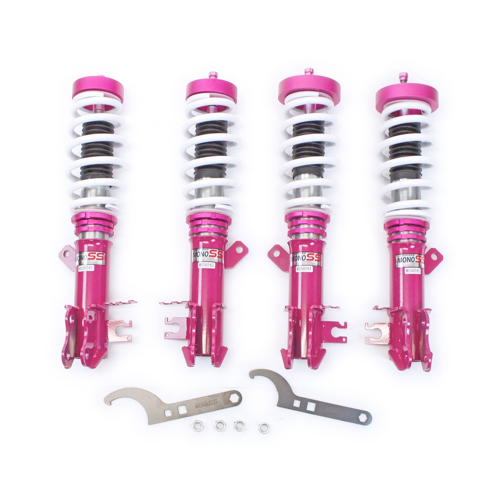 GodSpeed MonoSS coilovers are great entry level single adjustable coilovers. GodSpeed starts with a race coilover and tones it down for the street to give you an extremely capable coilover that you can comfortably use every day. GodSpeed uses some of the best and most exotic components on the market such as a carbon seamless steel 52mm tube with a high performance internal shock piston that provides fast and precise damper response. GodSpeed coilover springs are cold-bent from high strength SAE9252 steel to be comfortable and high performance.