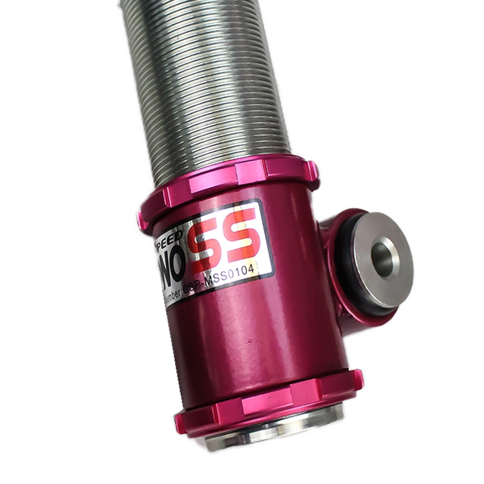 GodSpeed MonoSS coilovers are great entry level single adjustable coilovers. GodSpeed starts with a race coilover and tones it down for the street to give you an extremely capable coilover that you can comfortably use every day. GodSpeed uses some of the best and most exotic components on the market such as a carbon seamless steel 52mm tube with a high performance internal shock piston that provides fast and precise damper response. GodSpeed coilover springs are cold-bent from high strength SAE9252 steel to be comfortable and high performance.