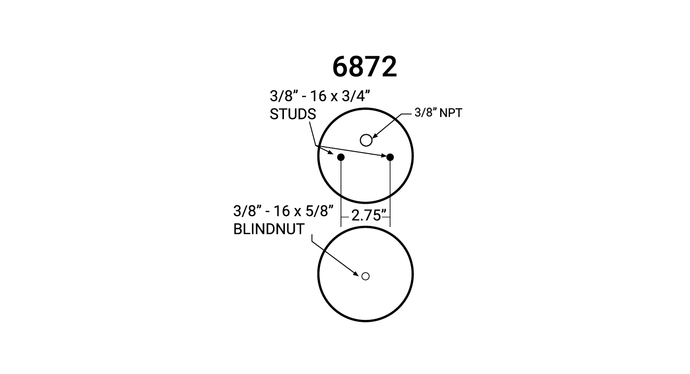The Firestone 3/8" 224C 2600-Style Air Bag is a dependable and durable airbag that features a single 3/8″ port to give you a lift as smooth as your ride and heavy-duty two-ply walls for increased durability. With a minimum height of 3″ and a maximum height of 9″, the Firestone 3/8" 2600 air bag provides 6” of usable stroke, giving you a smooth ride at any height. At an inflated diameter of 8″, the Firestone 3/8" 2600 air bag is most suitably in vehicles where suspension space isn’t a limitation. The Firestone 3/8" 2600 air bag that we carry have a single 3/8" pilot port on the bottom. All 2600-Style bags have a 2.75” distance between the mounting bolts.