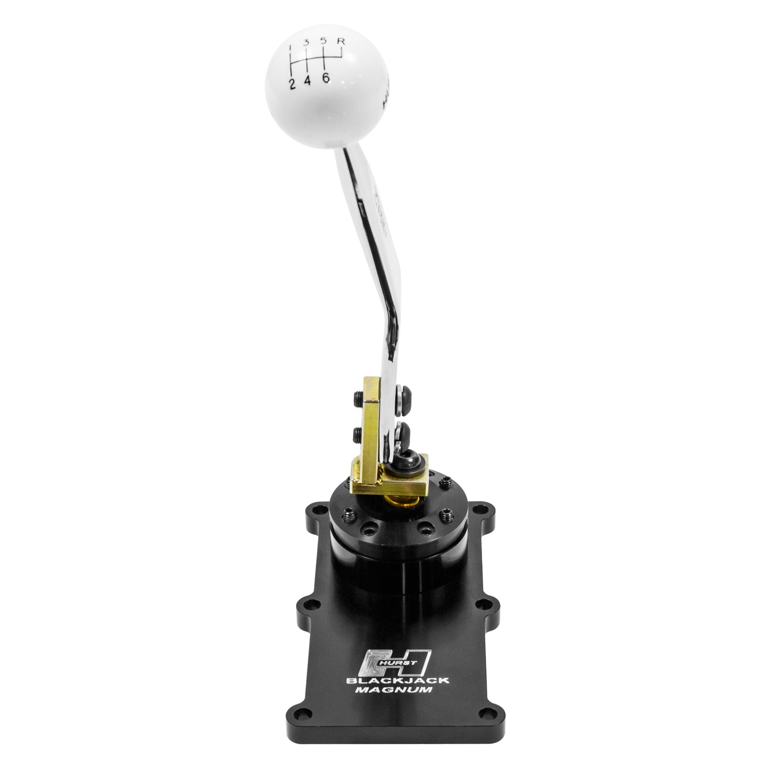 This Hurst® Blackjack™ Shifter is specifically designed to locate the shifter handle in the proper location for 1968 Chevrolet Camaro applications when using a Tremec Magnum 6-speed transmission. Hurst Blackjack shifter housings are CNC machined from billet 6061 aluminum, feature a tough black MIL-Spec anodized finish with the Hurst logo CNC machined in the top plate, ensuring you're buying the highest quality shifter available today for your Tremec Magnum 6-speed transmission. Other features include a zinc-plated hardened chromoly steel stick adapter, dual stick centering springs, hardened chromoly pivot pins and a durable delrin pivot ball for positive, quiet operation. Includes the classic Hurst chrome flat bar stick and white shift ball for the specified application. Fits factory consoles. Be sure to check out our new Hurst Billet Aluminum shift sticks.