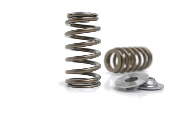 Featuring nano-peen and gold nitride surface finishing for superior strength and performance. This spring and retainer set suits high rpm high boost racing applications with vvt disabled. 95lb seat pressure. 195lb at 12.00mm lift. Maximum lift 12.50mm
