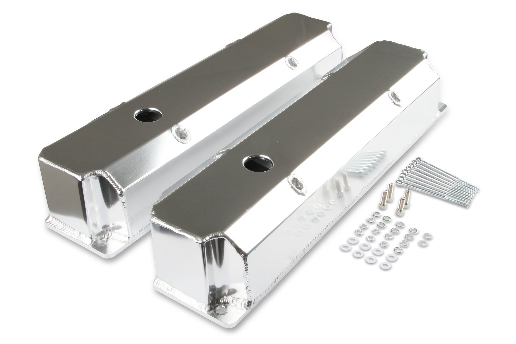 Mr. Gasket fabricated aluminum valve covers offer you a strong and lightweight valve cover at an affordable price. For your street, off-road, or racing machine. Constructed of 6061 T5 sheet aluminum and precision TIG welded for a great fit. We offer silver anodized or black coated finishes along with various heights to clear most popular rocker arm combinations.
