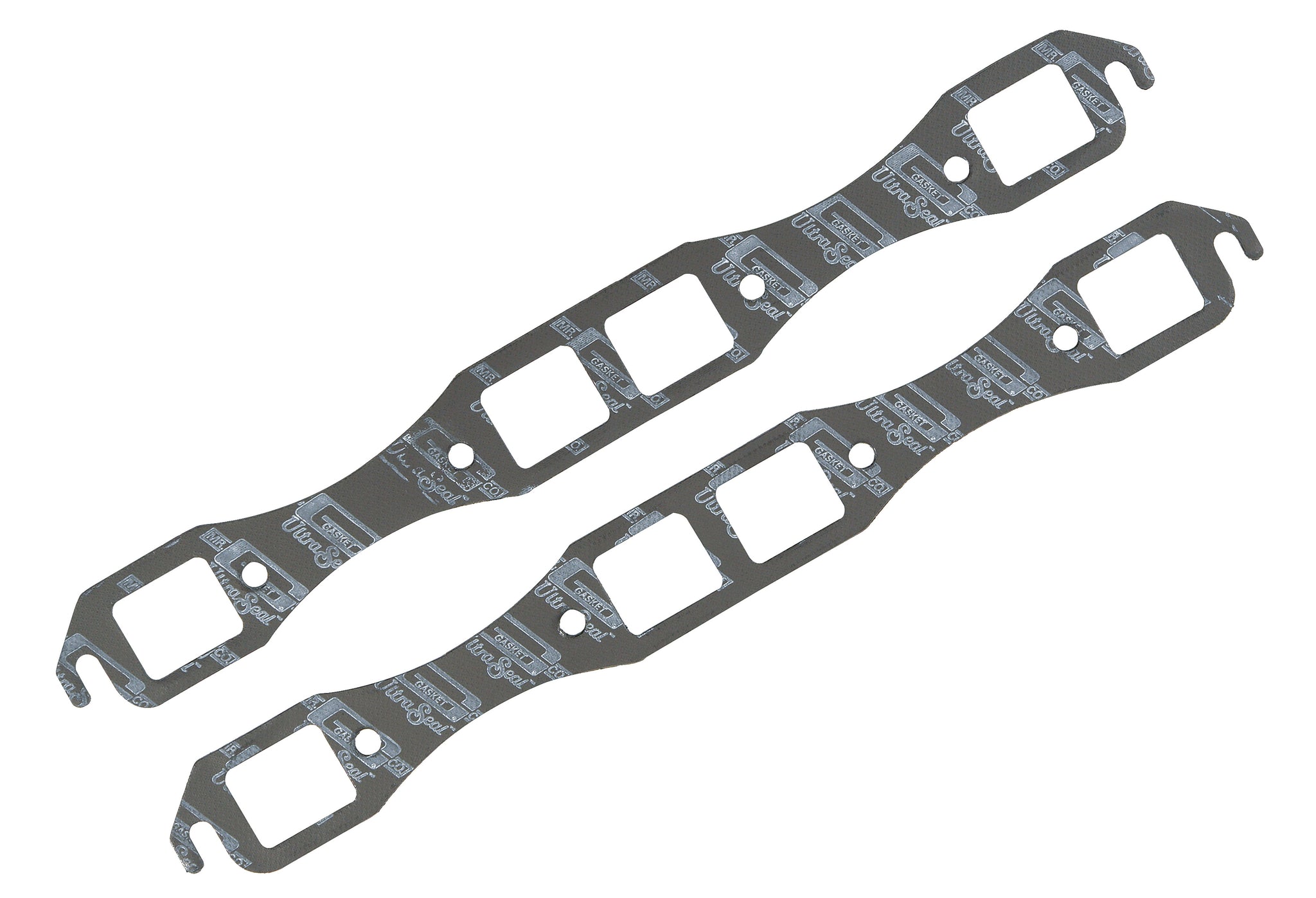 Manufactured from high-temperature steel core/graphite faced exhaust material. Expanded steel core provides stability and maximum torque retention to eliminate gasket failure. Graphite facing provides excellent heat resistance and thermal conductivity to transfer heat away from the cylinder head. Conforms to and seals minor surface irregularities. High recovery material allows header or manifold flange to stay sealed if flange loses clamp-load. Can be trimmed if necessary for modified port applications. For original equipment replacement, high performance street, drag race and oval track use.