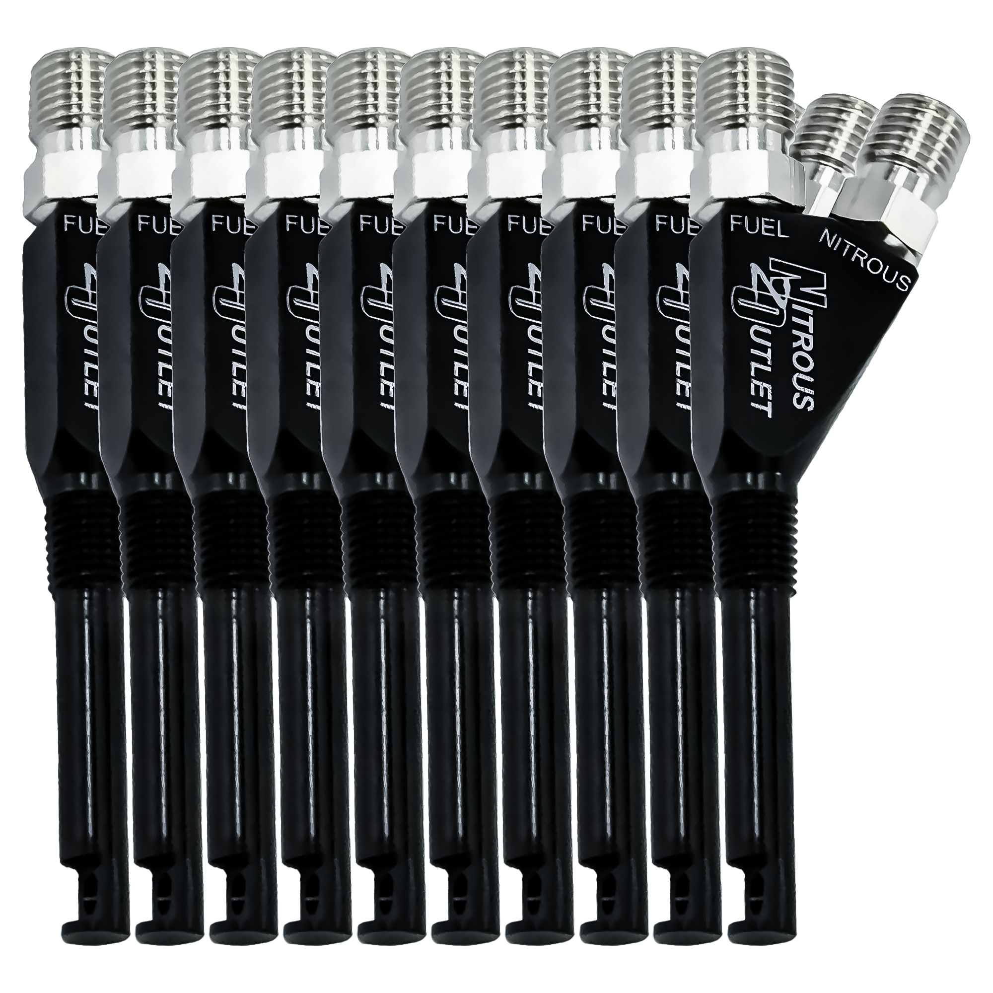 Nitrous Outlet 1/16" NPT Extended Reach Wet Nitrous Nozzle - 10 Pack/90 Degree Discharge/Aluminum