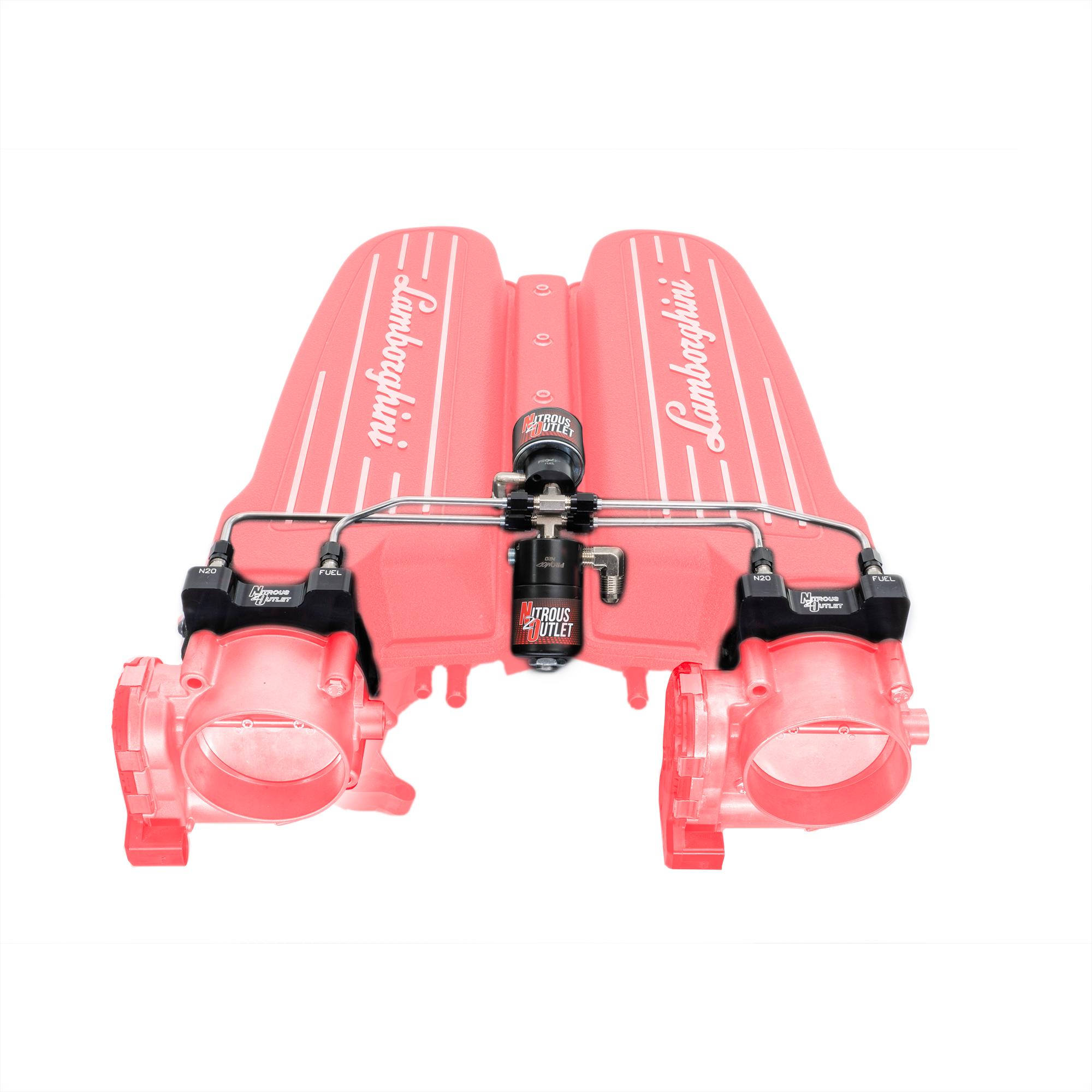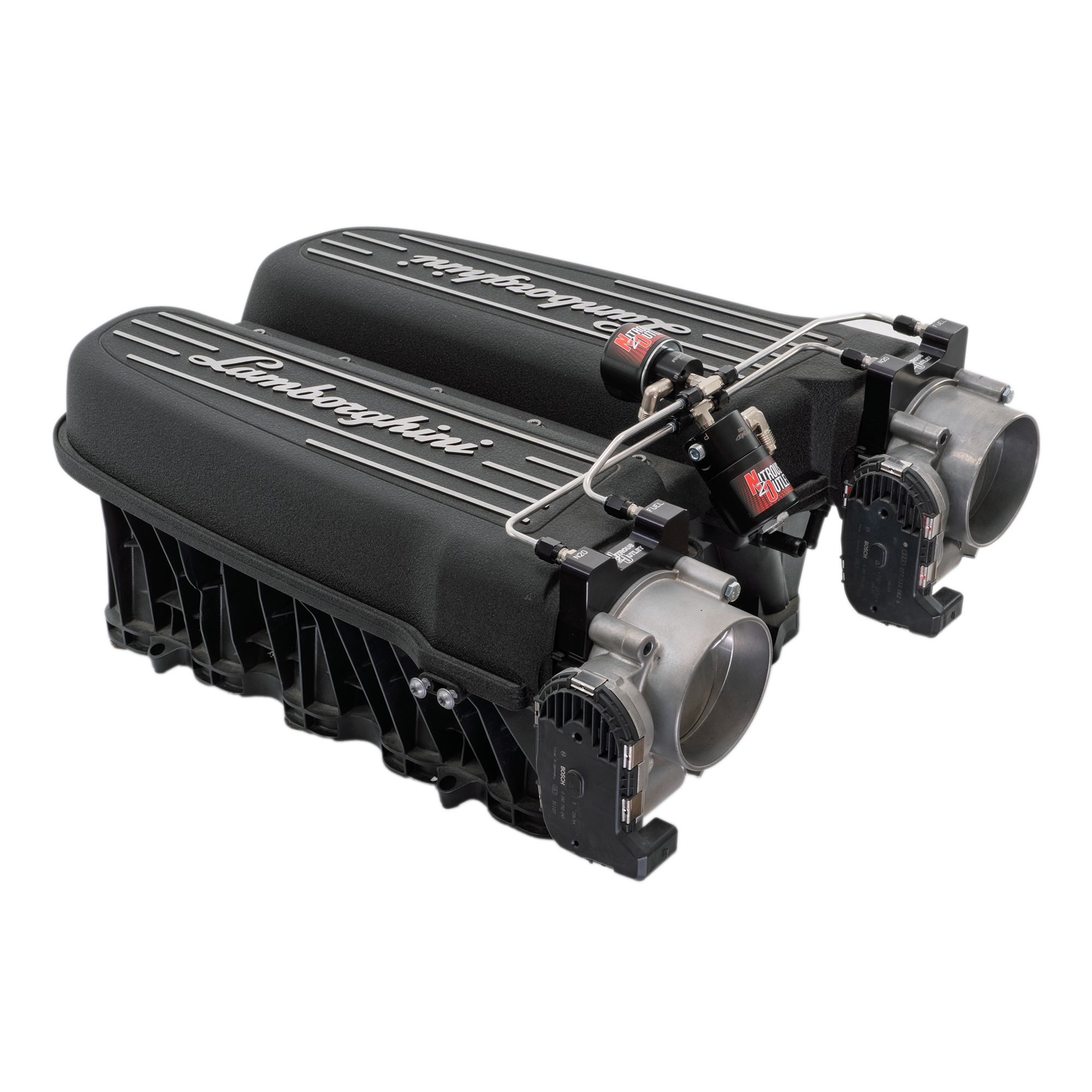 Intake Specific. Nitrous Outlet's Intake Specific Nitrous system is the safest, best fitting, and most tuner friendly system available.This system is designed specifically for the 09-15 Lamborghini Gallardo/Huracan, including solenoid brackets, pre-bent hardlines, fuel feed adapter, and application specific hardware for the best fitment and cleanest install on the market.