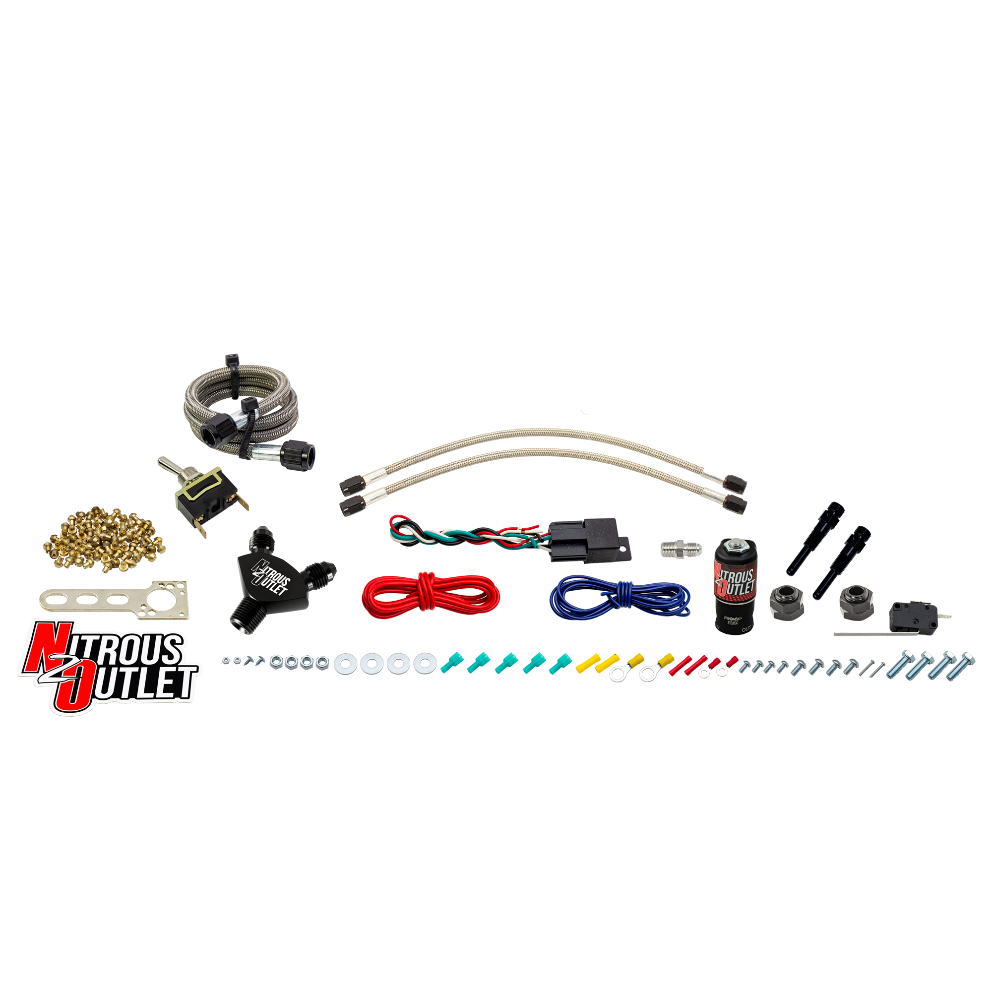 Complete System. This system includes all of the necessary components; 1 nitrous solenoid, 2 nozzles, jetting for 20-60HP, hardware, and electrical to install a direct port nitrous system capable of adding up to 200HP to your bike or ATV.