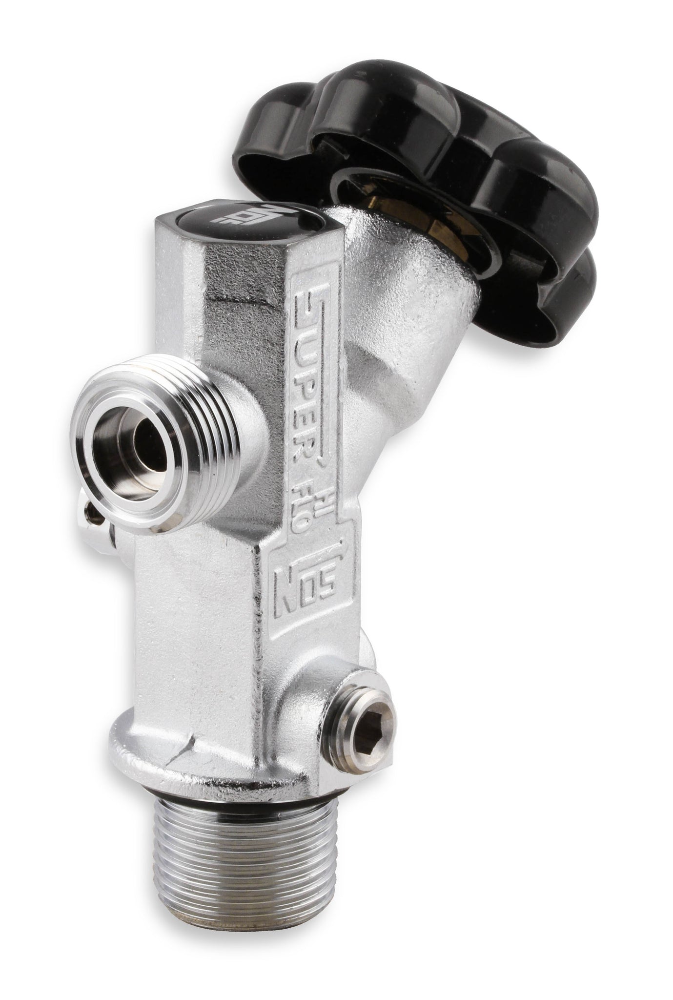 Our NOS Super Hi-Flo valve is one of the best available! Key features include a 1/8"NPT gauge port, 1/4"NPT accessory port, large outlet port, CGA #660 outlet threads, an O-ring seal, and large internal ports. This valve can support systems to 500+ HP. The newest versions of the NOS Super Hi-Flo™ valve are identified by the 45° handwheel and gauge port. This valve is a direct replacement for all NOS bottles, 5 lbs. and larger.