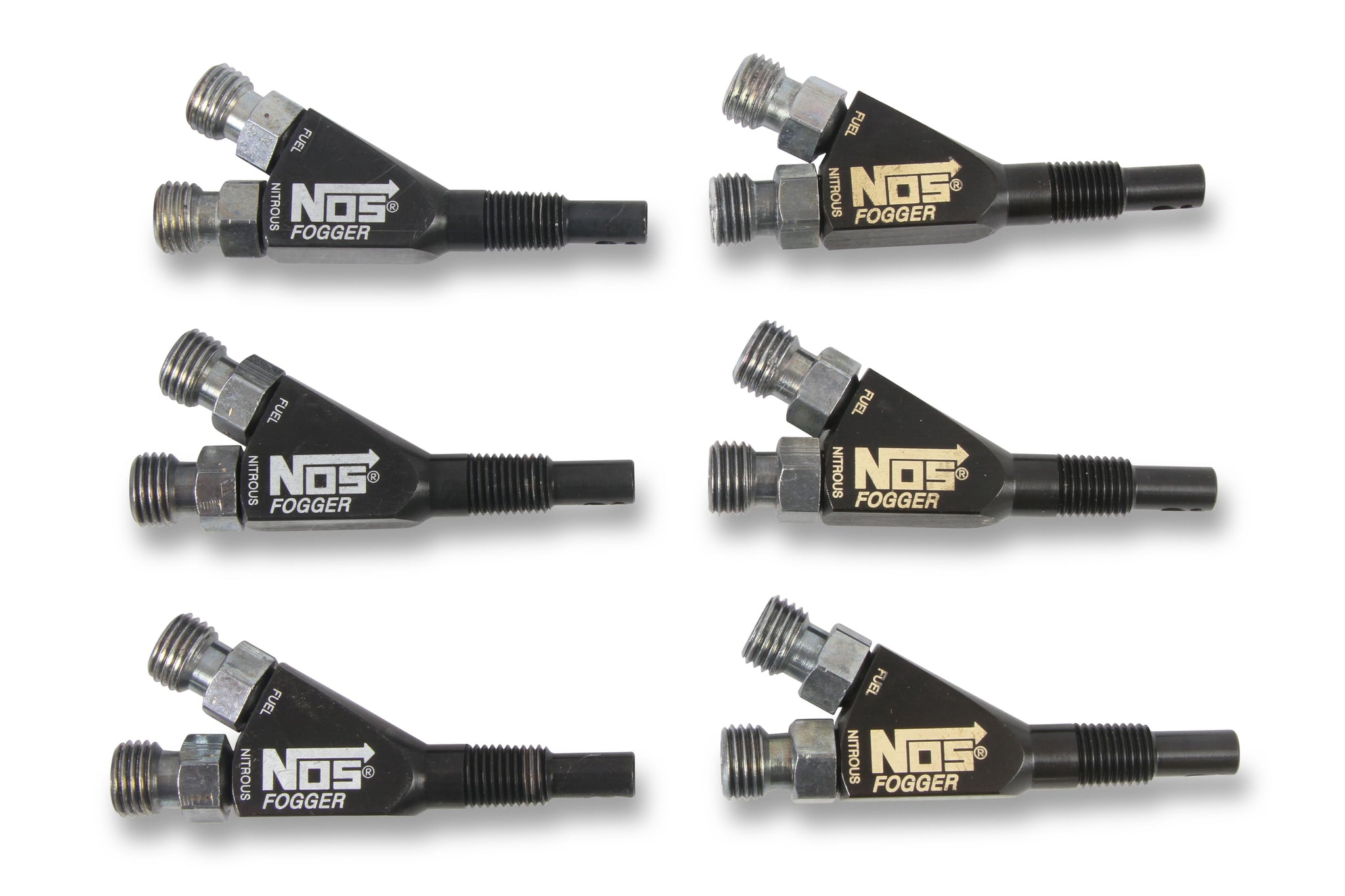 Engineered for precise distribution of nitrous and fuel for all domestic and foreign carbureted/EFI 4, 6, 8 cyl. & Rotary engines. The NOS Sportsman Fogger Systems offer superior atomization and tuning by injecting precisely measured amounts of fuel and nitrous into each individual port with our patented Fogger Nozzles. Power levels are adjustable by changing nitrous and fuel jets in each Fogger Nozzle. The latest in high-tech solenoid technology allows for an extreme degree of reliability with jetting adjustability ranging from a 50 to a 150 extra HP gain. All Sportsman Fogger Systems include a 10 lb. capacity nitrous bottle, Powershot nitrous and fuel solenoids, Fogger nozzles, aircraft quality steel braided hose, and all other necessary electrical and mounting hardware for a complete installation.
