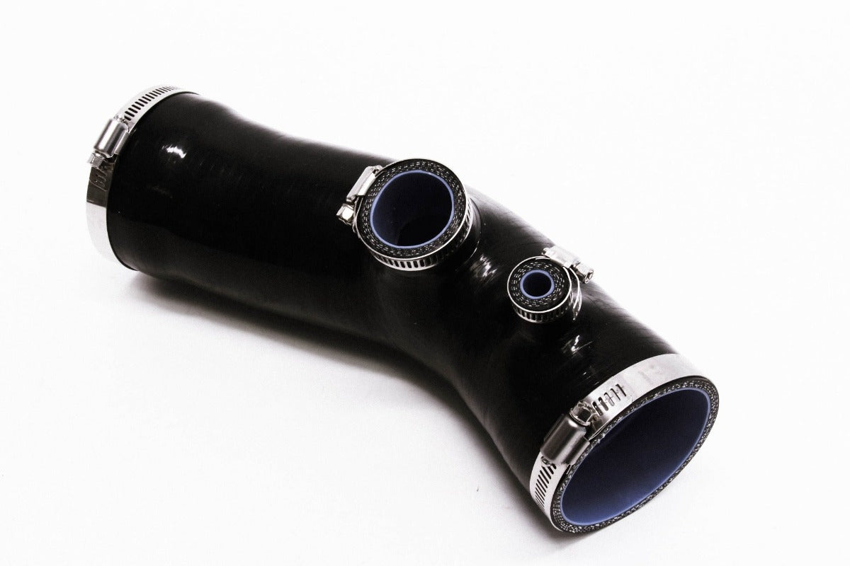 PLM Private Label Mfg. intake silicone hose kit replaces the OEM pipe which is restrictive with uneven airflow.