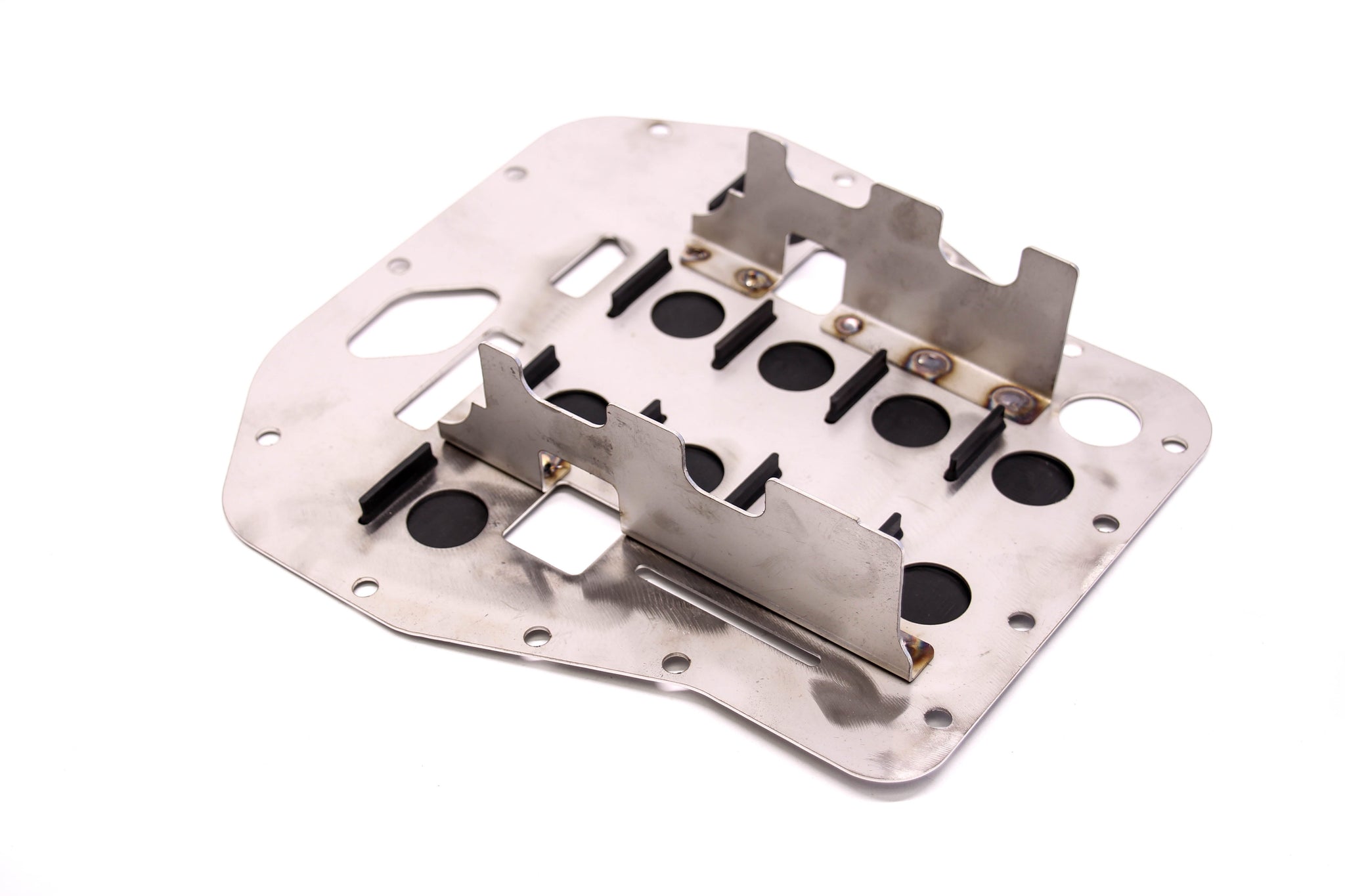 Why is our oil pan baffle better?  PLM oil pan baffle is completely welded and not using rivets.  Rivets can come loose and break inside your oil pan, potentially cause serious engine damage or failure.  We use high quality stainless steel plates, CNC machined, laser cut, and precision bent, then finally tig spot welded at circuital points.