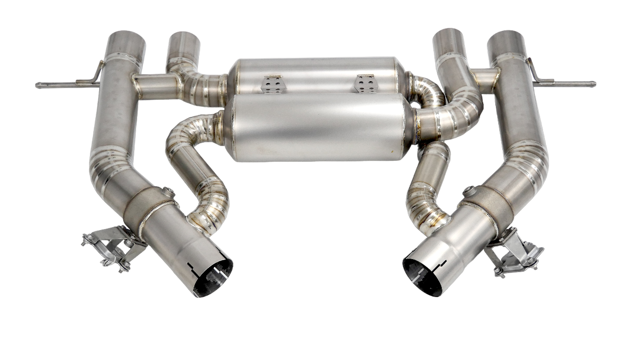 We utilize & retain factory exhaust valves, so you directly control it from the iDrive, no funny aftermarket control box or re-wiring needed!  Full titanium, lightweight construction, larger 3" diameter piping, that produces maximum horsepower gains!