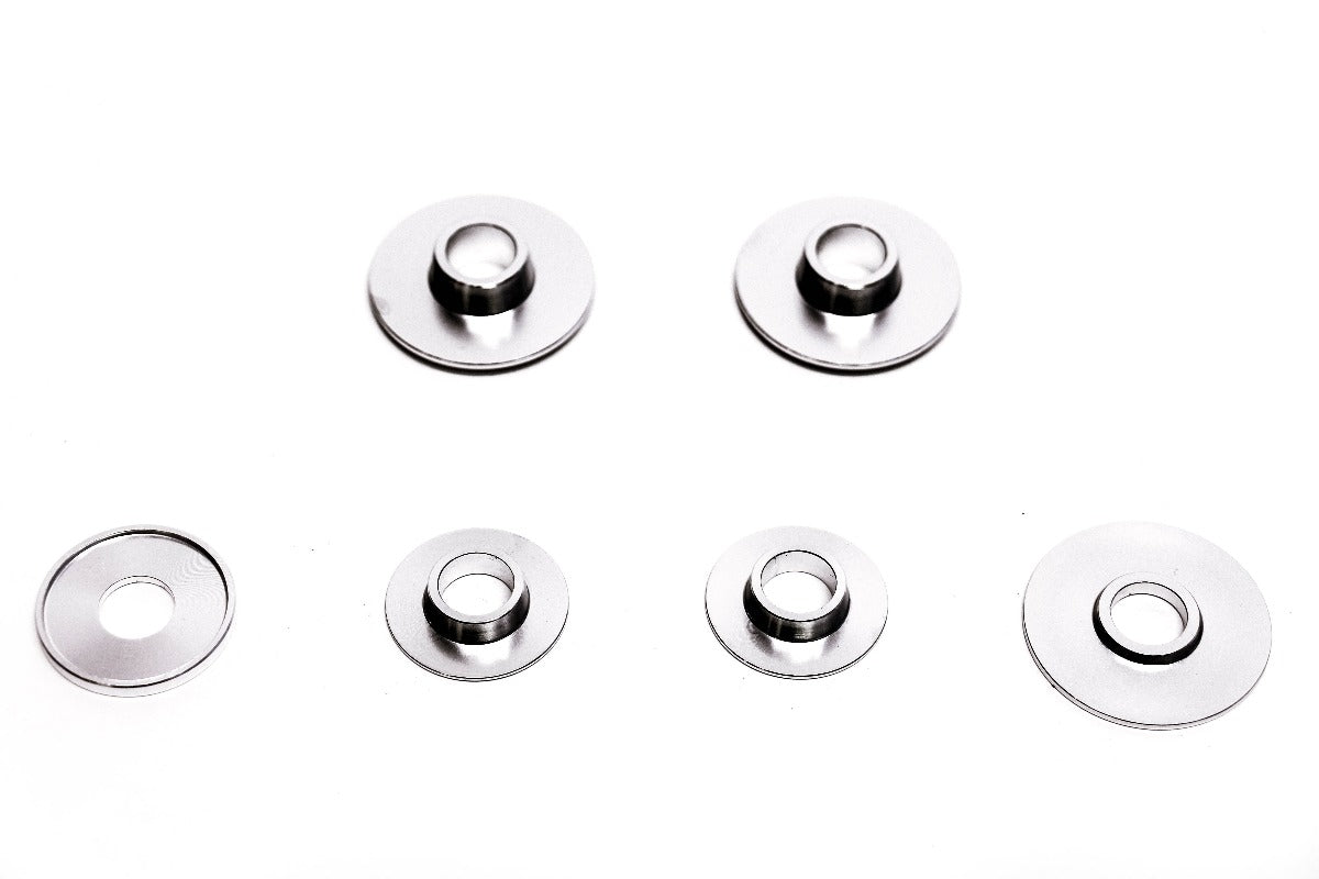 Made from one piece CNC machined billet aircraft aluminum, these collar inserts fit perfectly between the subframe and the chassis bolts. By installing these hard collar inserts rings, it will eliminate any play between the chassis and subframe, thus increasing vehicle stability and suspension precision.