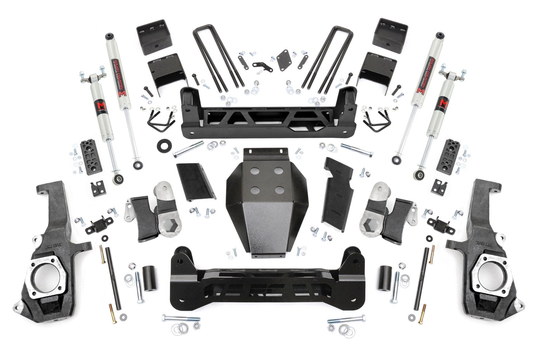 Command Attention from the Start: Right off the lot, the GM 2500/3500HD commands attention with its aggressive stance and sharp style. Rough Country's 7.5" Suspension Lift was engineered to enhance this bold presence while keeping every factory advantage intact. Designed with a Non-Torsion Drop layout, this kit delivers improved ground clearance and handling without compromising your truck's factory angles or axle placement. Built with heavy-duty components, including 1/4" thick steel crossmembers, 1/2" thick NTD brackets, and a rugged skid plate, all laser-cut and finished in durable Hammer Black, this lift offers both strength and style. Installation is straightforward and non-invasive, requiring no drilling or differential modifications, so you can elevate your truck without altering its core mechanics.Ride Smoothly with Factory Precision: Experience a ride that feels as smooth as stock with features engineered to retain factory quality. The Non-Torsion Drop design preserves proper torsion bar placement and stock track width, keeping your wheels aligned and handling predictable. Factory axle positioning is maintained to prevent premature wear, while the kit requires no changes to your drivetrain or exhaust. Fully configurable shock options allow you to dial in your ideal ride, with nitrogen-charged N3 shocks, upgraded M1 or V2 monotubes, or premium Vertex reservoir shocks available to suit your driving style and terrain.Conquer Any Terrain with Confidence: Rough Country's 7.5" Suspension Lift gives your third-generation Chevy/GMC 2500HD/3500HD the perfect balance of aggressive off-road capability and factory-like comfort, letting you tackle tough terrain with confidence and style.