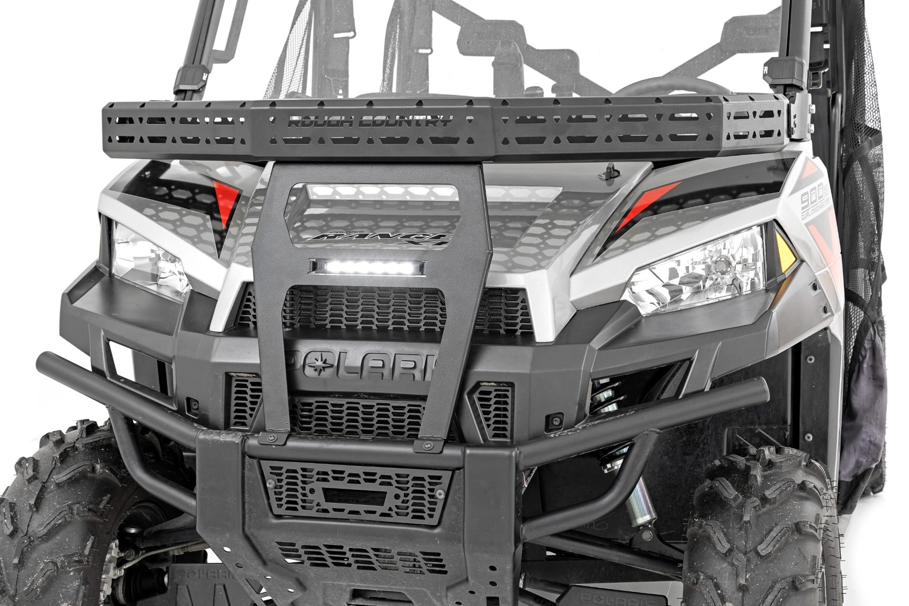Easy Access. Overland adventures require bringing plenty of gear along for the ride. Ensure that your Polaris Ranger has plenty of cargo space by installing Rough Country's Front Cargo Rack Kit. This rock-solid rack design can provide storage to haul all of your gear without sacrificing your cab, or bed space!\Durable Construction. Rough Country's cargo rack kit is constructed from heavy-duty steel and features a laser-cut mesh pattern that provides plenty of mounting points to secure your load. Since adventure doesn't end when the sun goes down, this kit includes a 6" slimline LED light bar. Whether youΓÇÖre off the beaten path at sunset or gathering all your gear before dawn, youΓÇÖll be glad to have access to additional lighting power to tackle the task at hand. Rough CountryΓÇÖs all-weather LED lights feature a durable, IP67 Waterproof, die-cast aluminum housing and include a premium wiring harness with a toggle switch.\Installation. With minor drilling required for installation, an estimated timeframe of 3-4 hours is recommended to complete this full installation. This full kit can be installed at home and can be completed efficiently and quickly!\Limited Lifetime Replacement Warranty. Rough CountryΓÇÖs Front Cargo Rack is backed with a limited lifetime replacement warranty towards manufacturer defects. As such, the product is protected from structural and workmanship damage after the date of purchase. With our industry-leading warranty give yourself peace of mind when using Rough Country's Suspension products!
