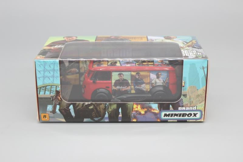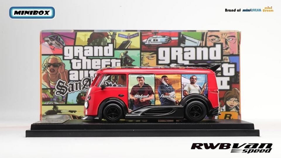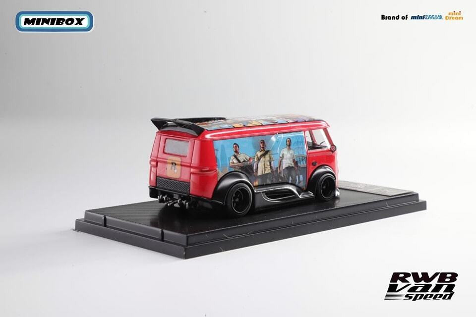 VOLKSWAGEN BUS VAN RWB GRAND THEFT AUTO GTA RED WITH BLACK WHEELS 1/64 SCALE DIECAST CAR MODEL