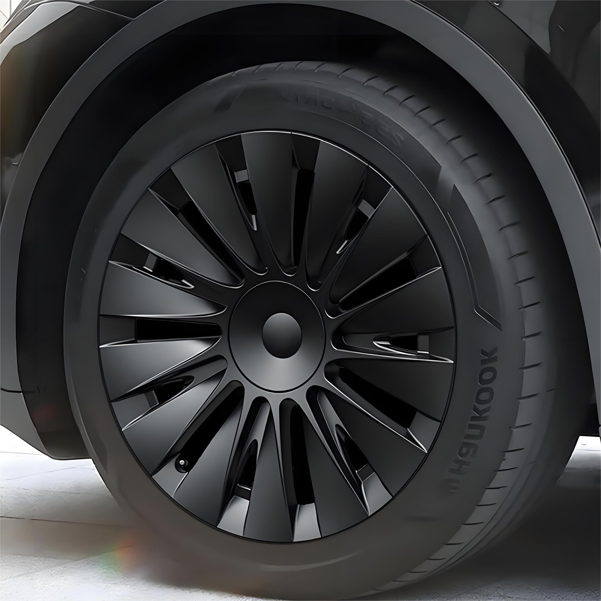 - Design Upgrade - Tesla Model Y hubcaps19 inches specially designed for Tesla Model Y 2020 - Present. Turbine design can effectively reduce wind resistance and makes your car look cooler and more unique.